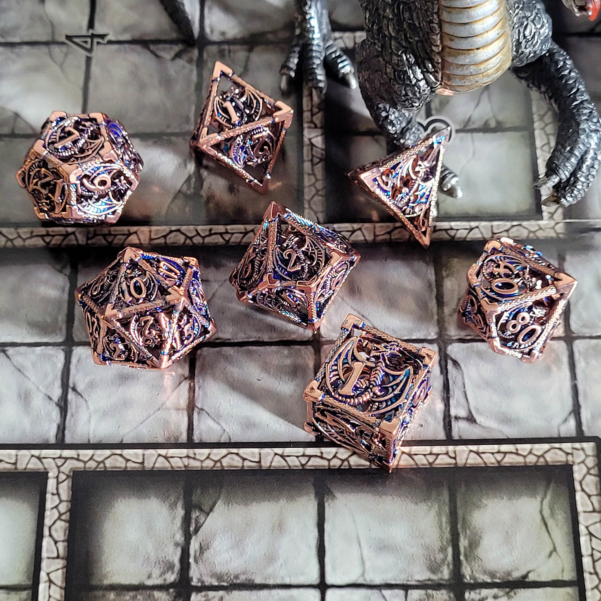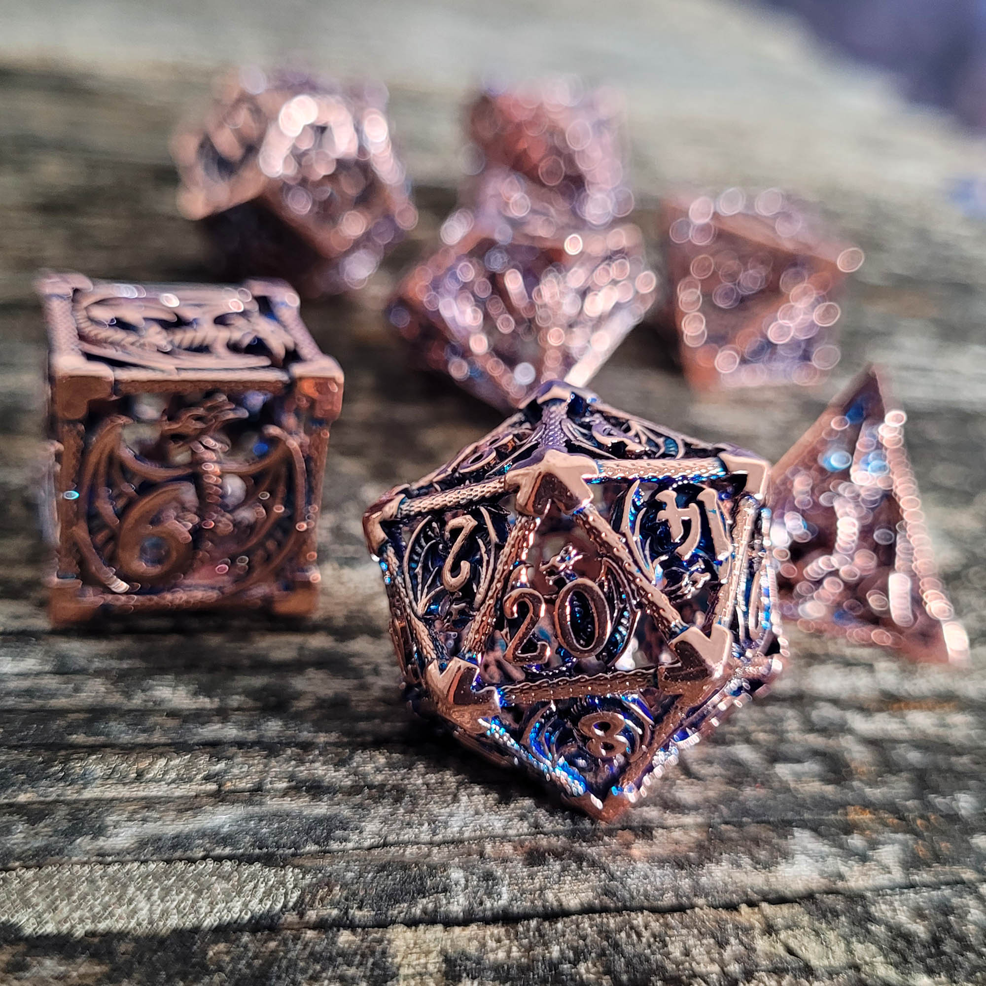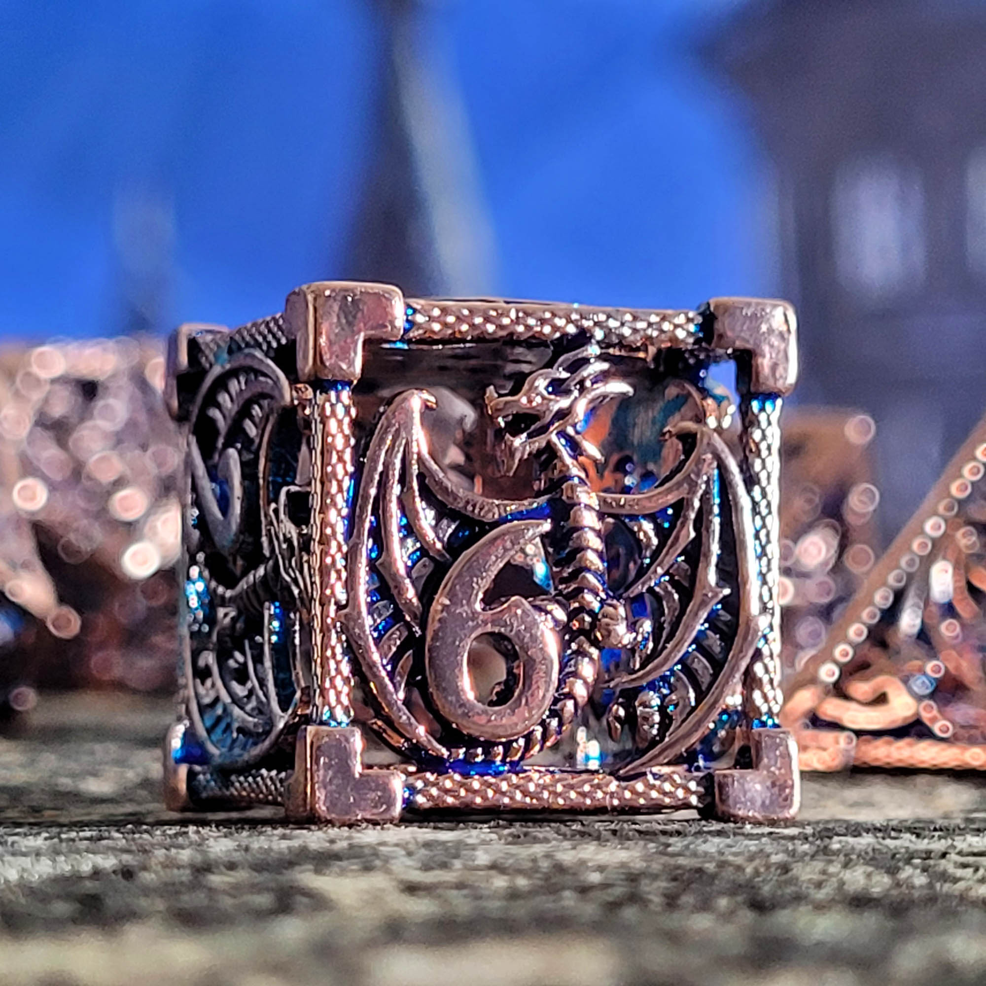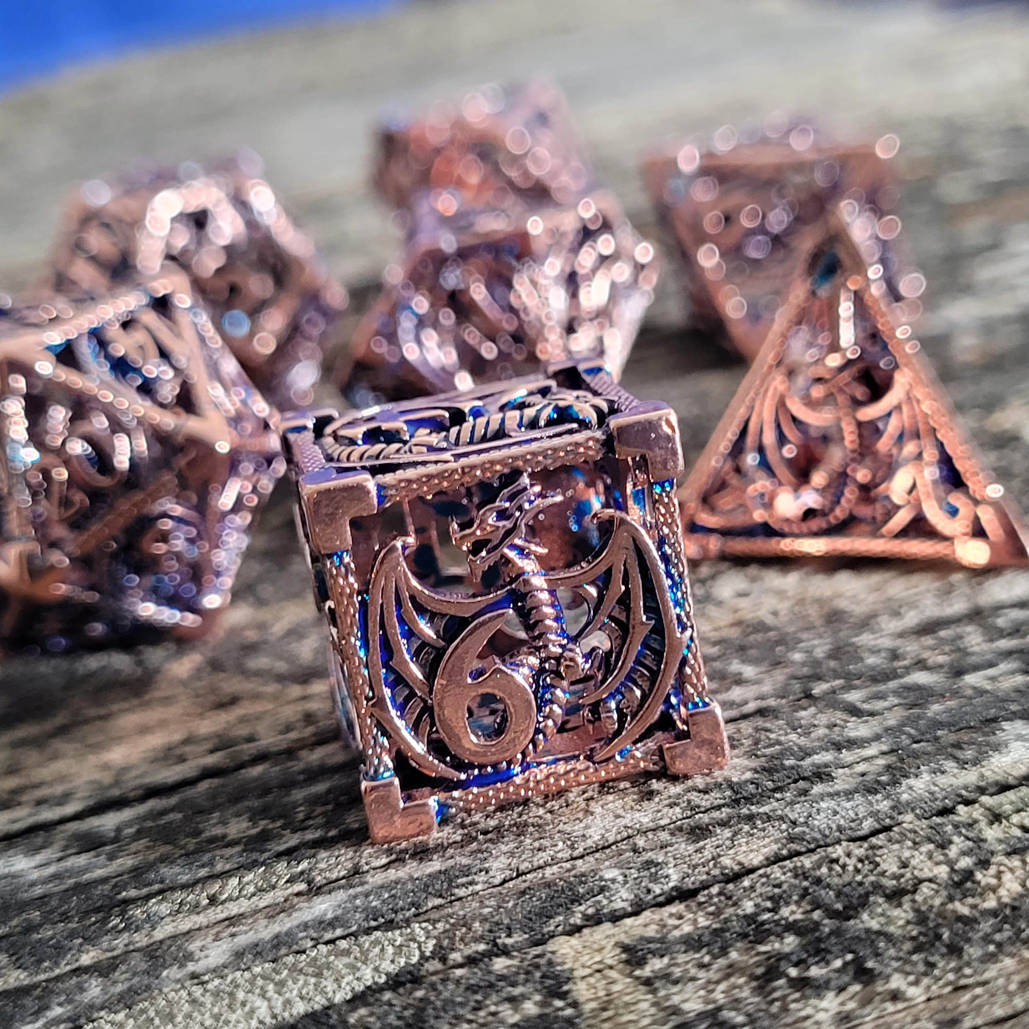 Dragon Rampant Copper Blue Hollow Metal RPG Dice Set