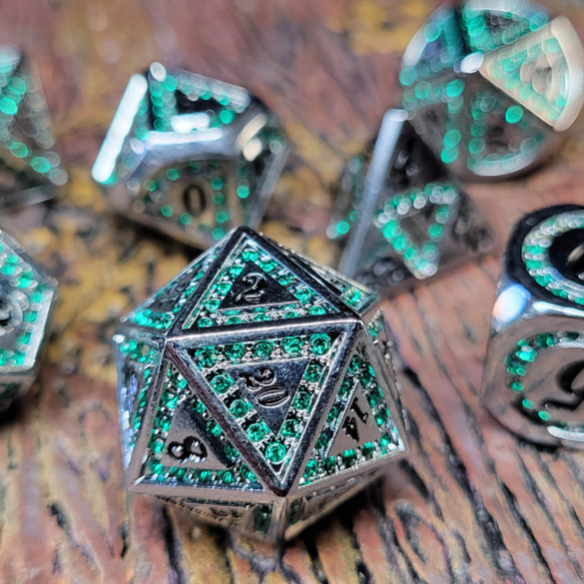 Serpent's Eye Silver Hollow Metal RPG Dice Set