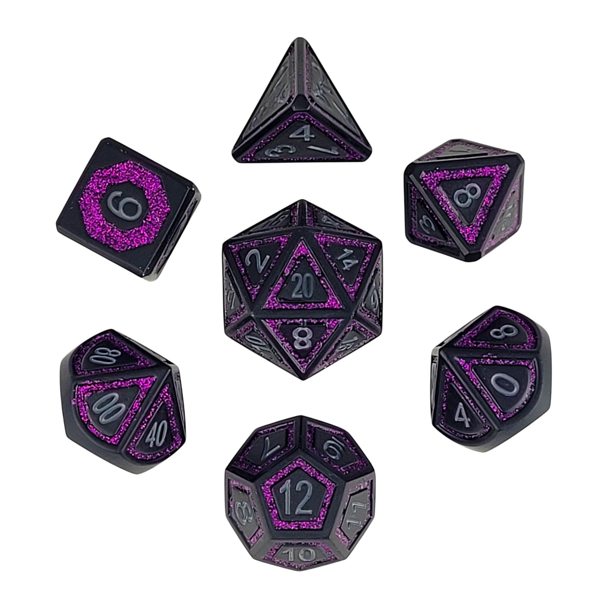 Celestial Artifact Black Purple Metal RPG Dice Set of 7