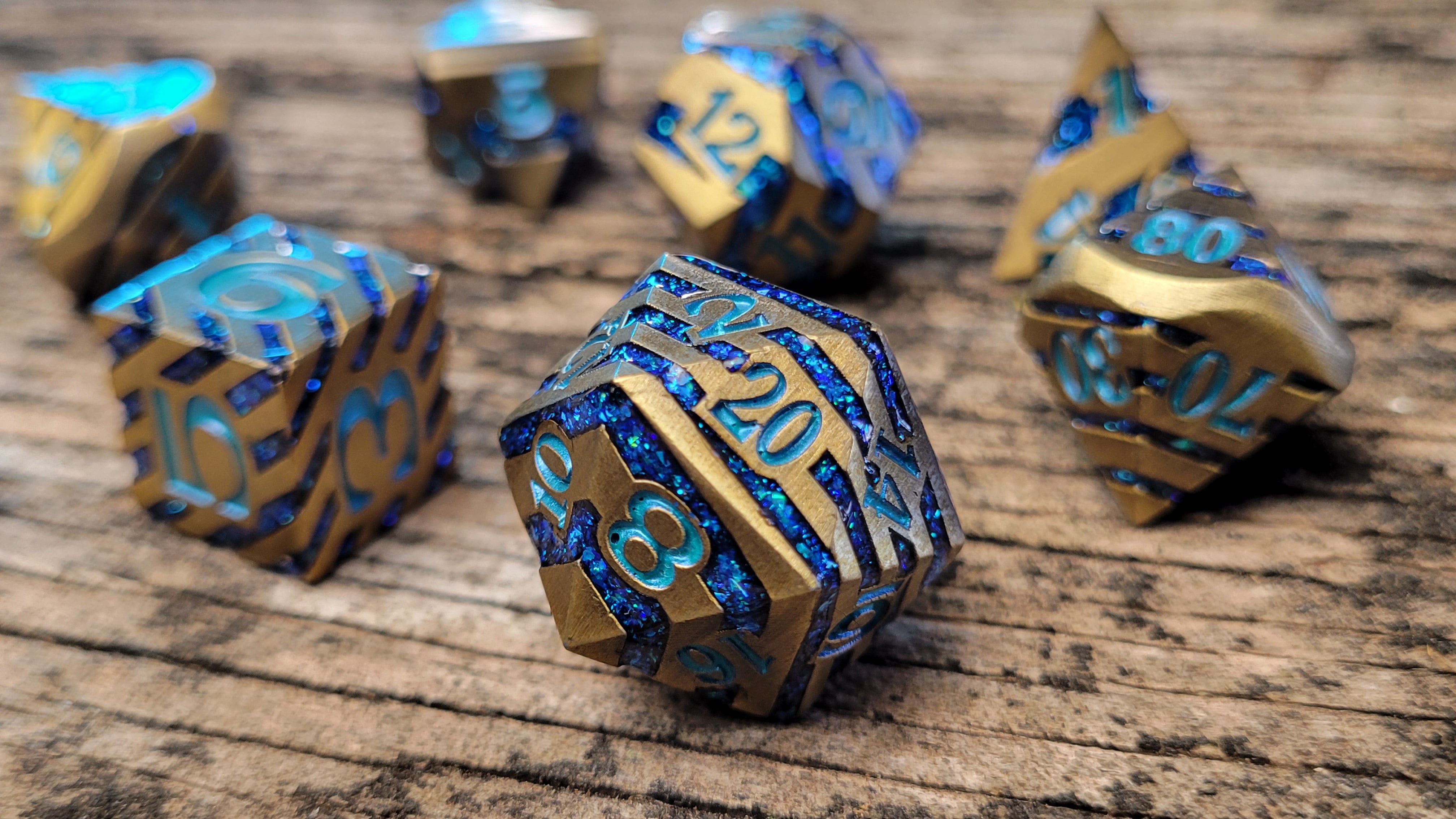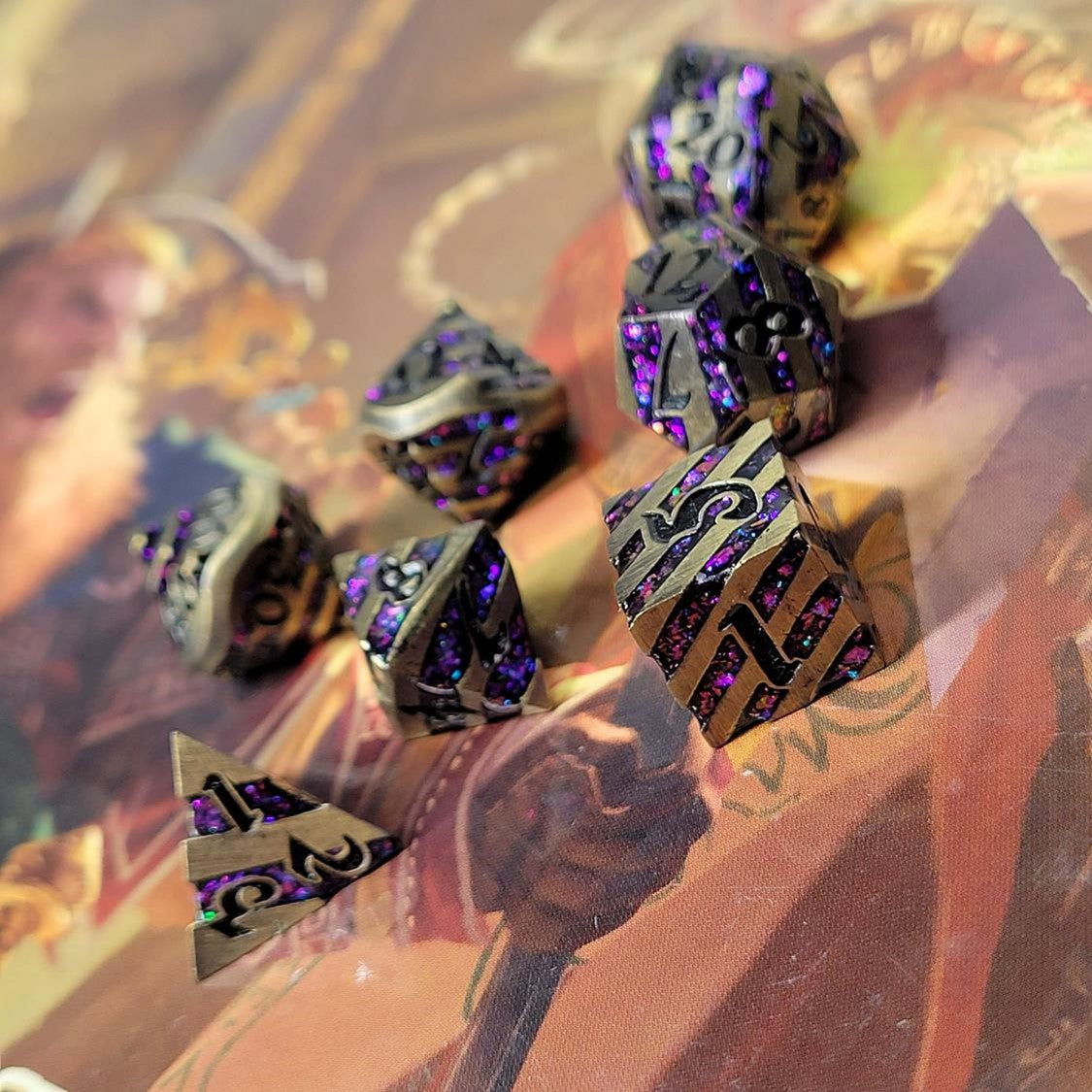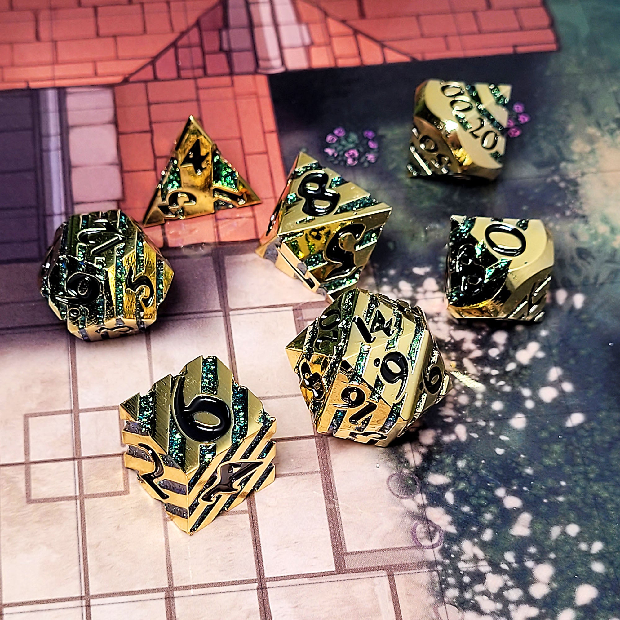 Banded Gnomish Riches Set of 7 Metal Dice Set