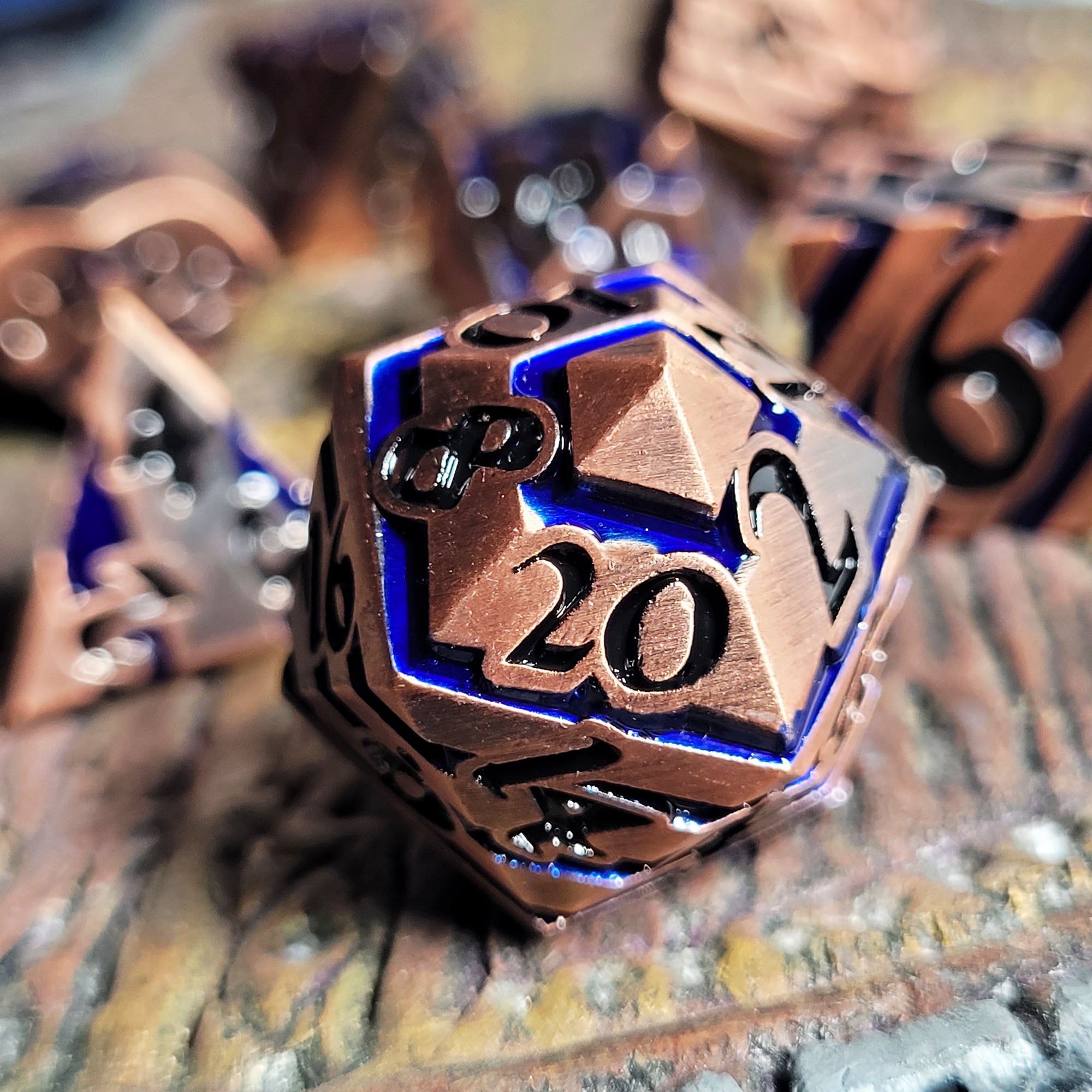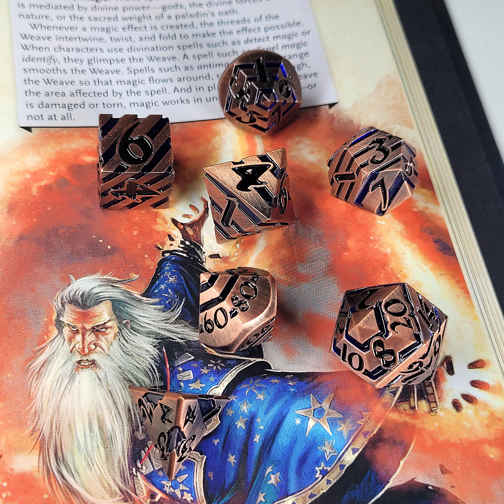 Banded Scarred Copper Set of 7 Metal Dice Set