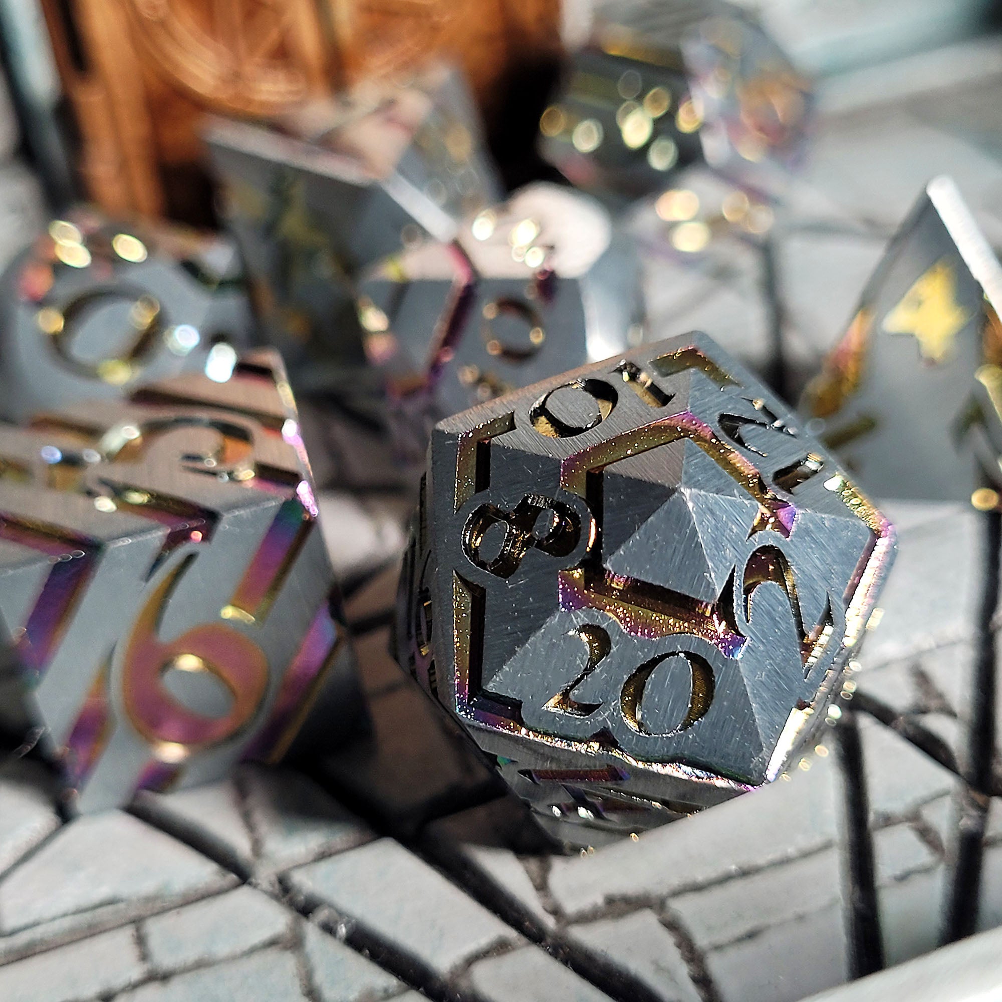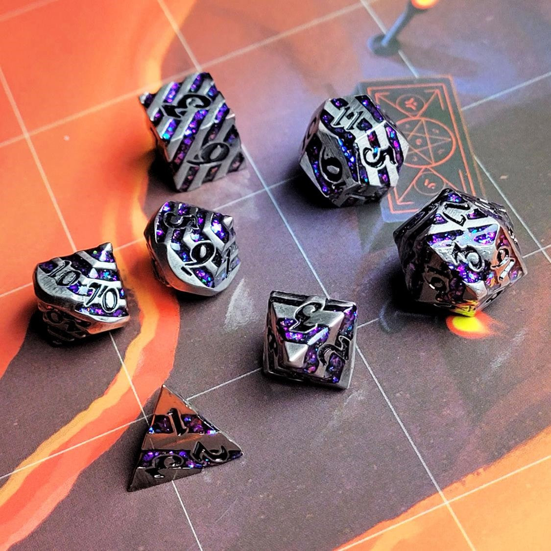 Banded Sphinx's Calling Set of 7 Metal Dice Set