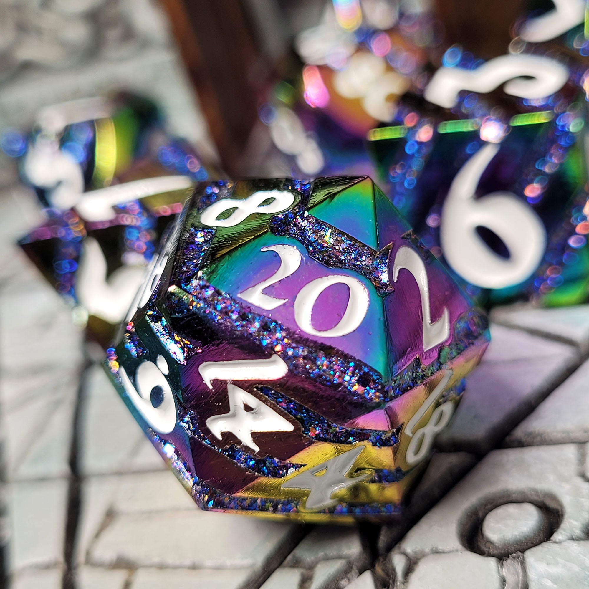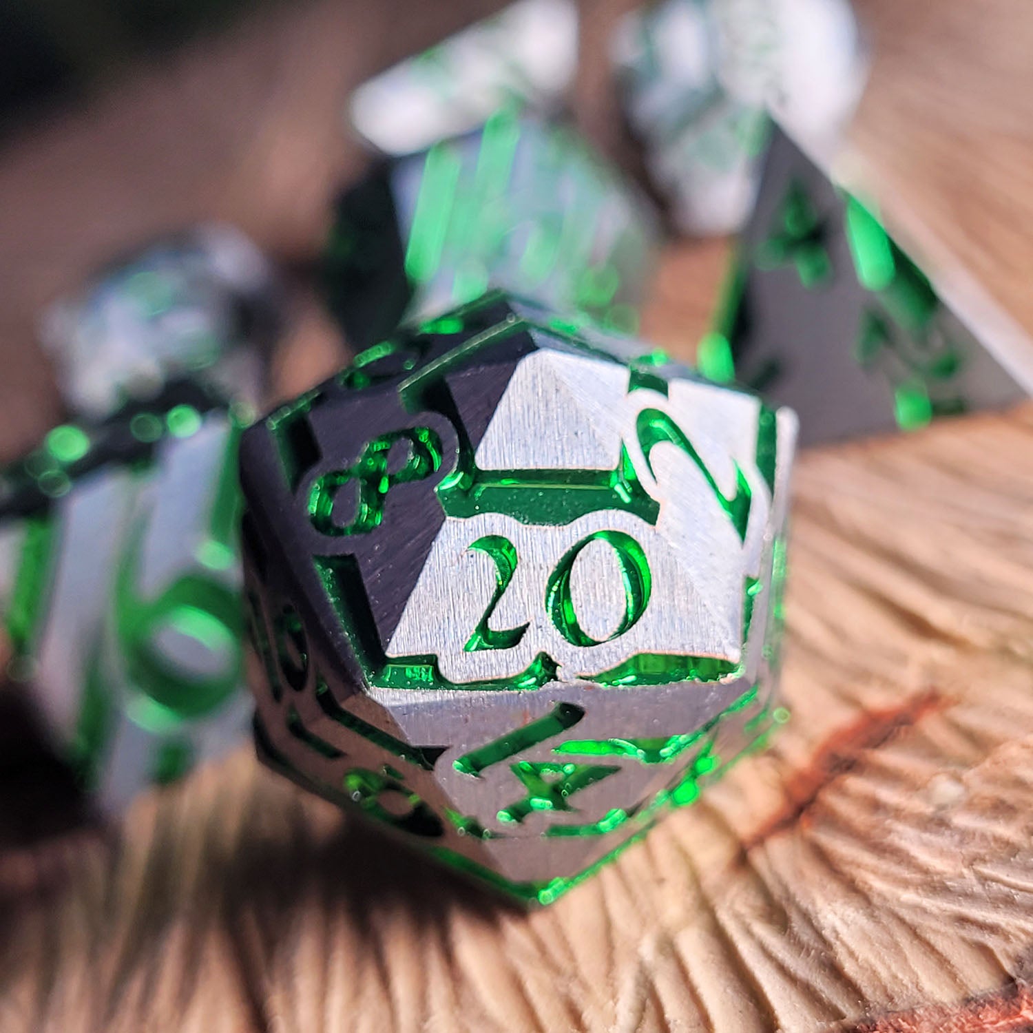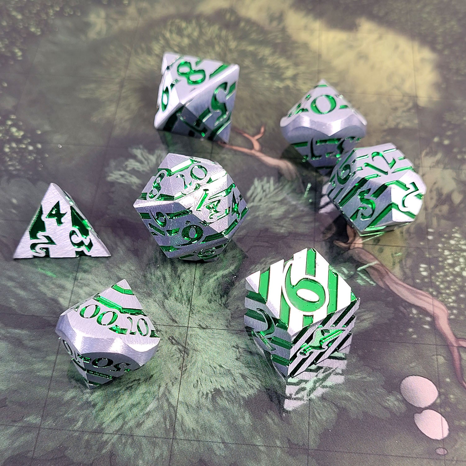 Banded Sylvan Slash Set of 7 Metal Dice Set