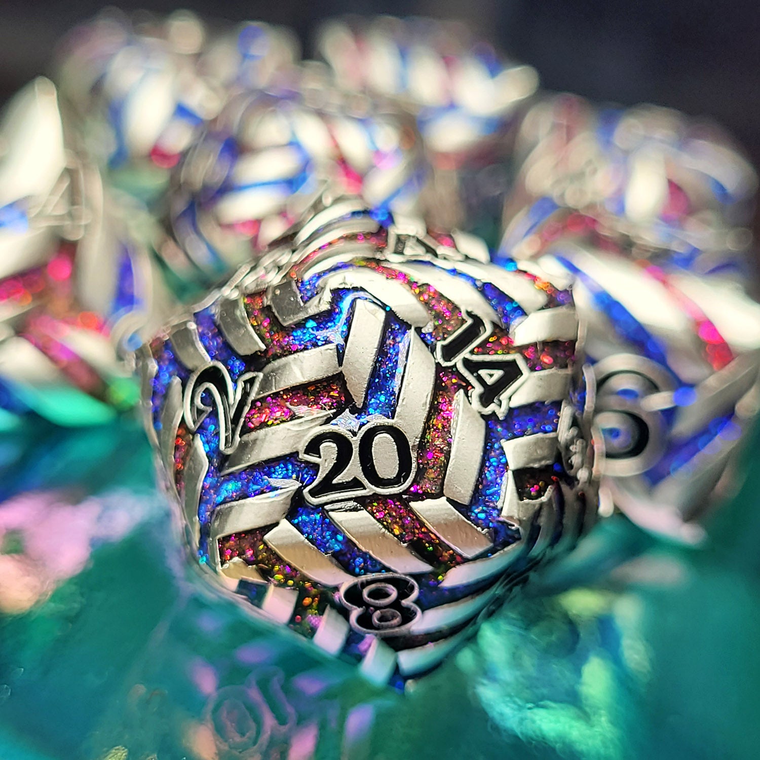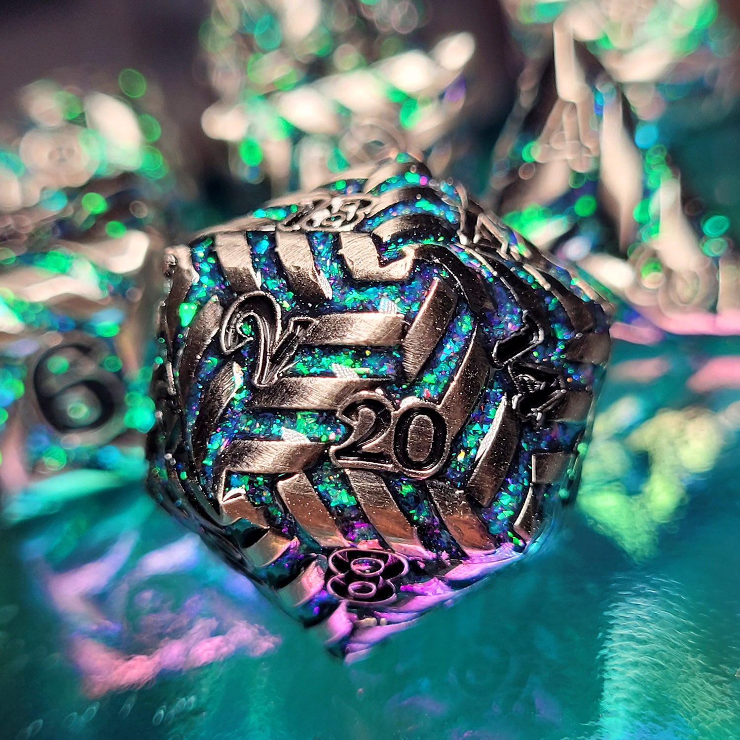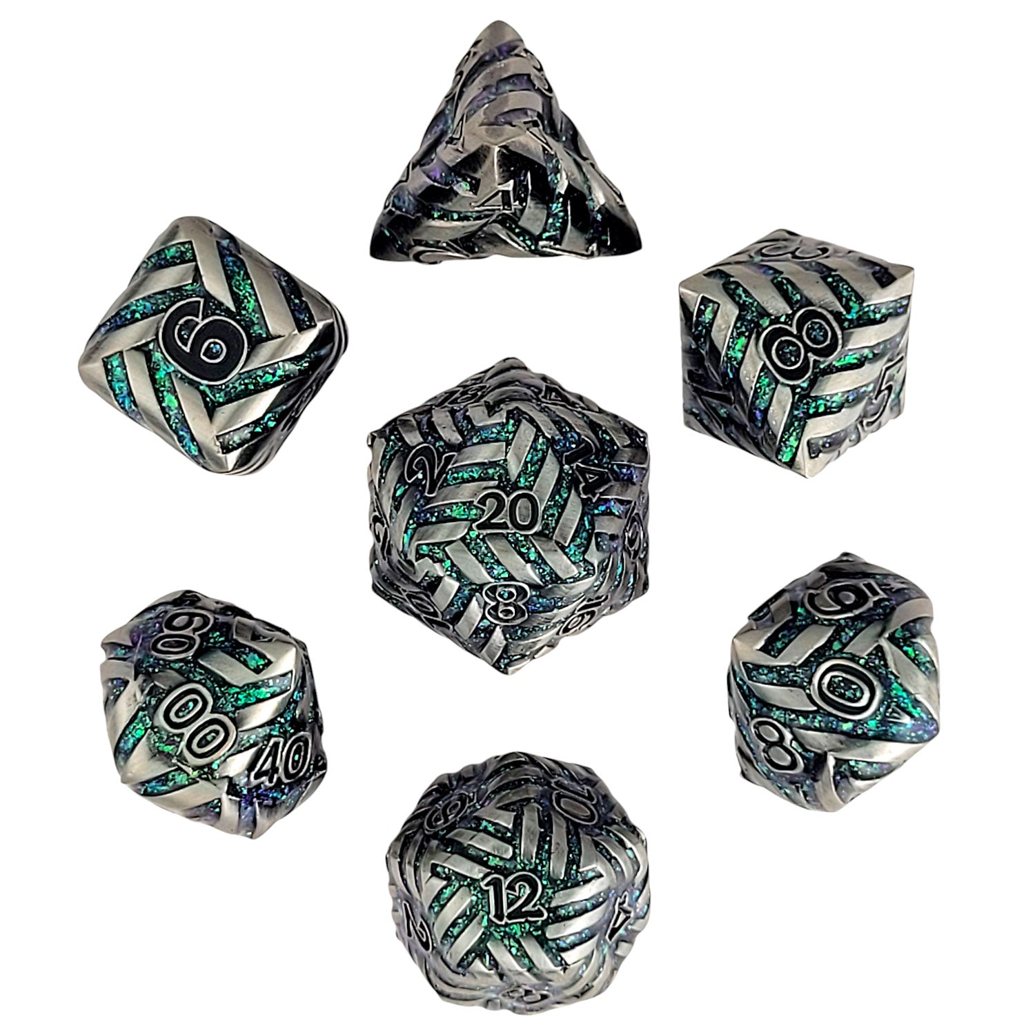 Cosmic Energy Nickel Green-Purple Metal RPG Dice Set of 7