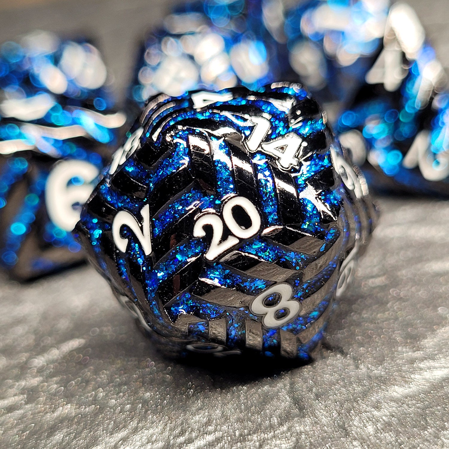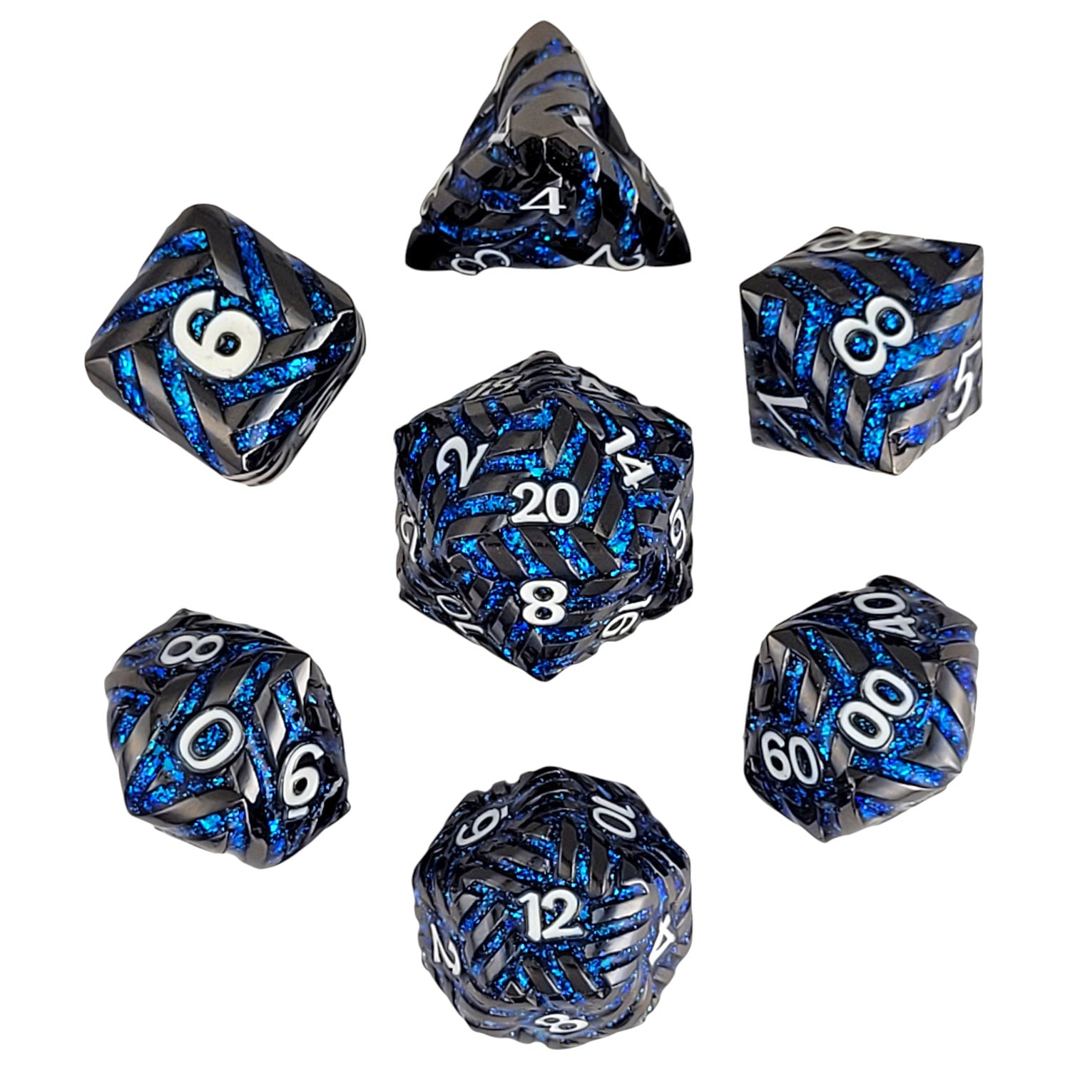 Cosmic Energy Gunmetal Blue Metal RPG Dice Set of 7