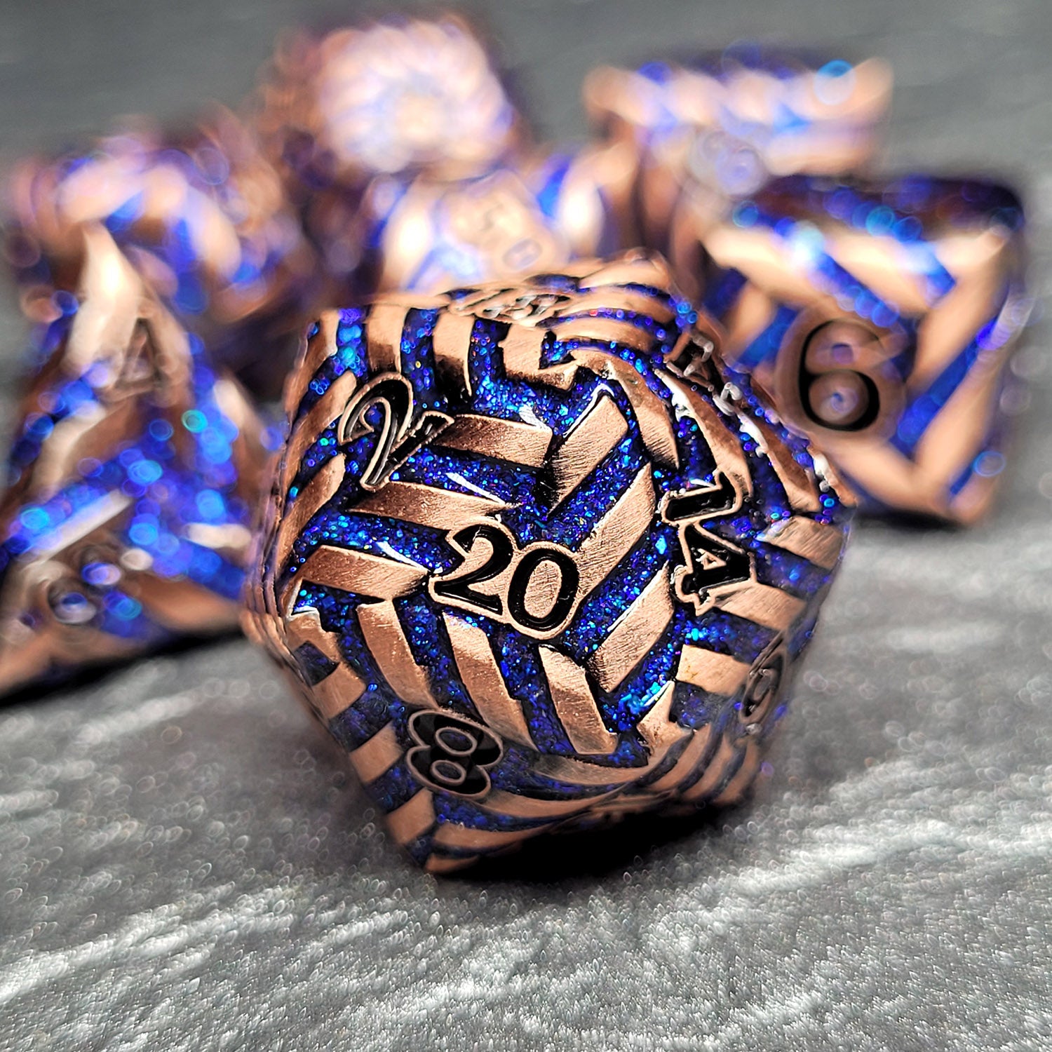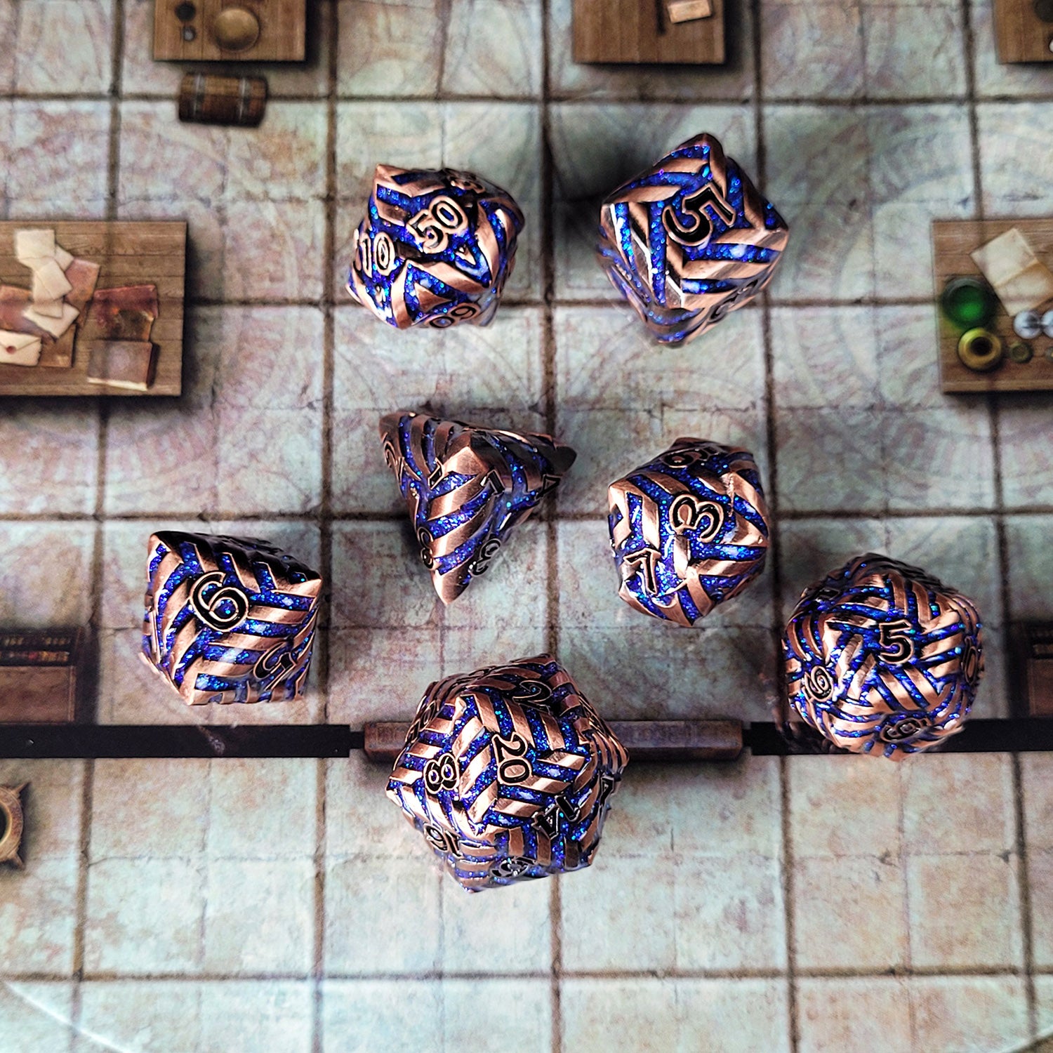 Cosmic Energy Copper Blue Metal RPG Dice Set of 7