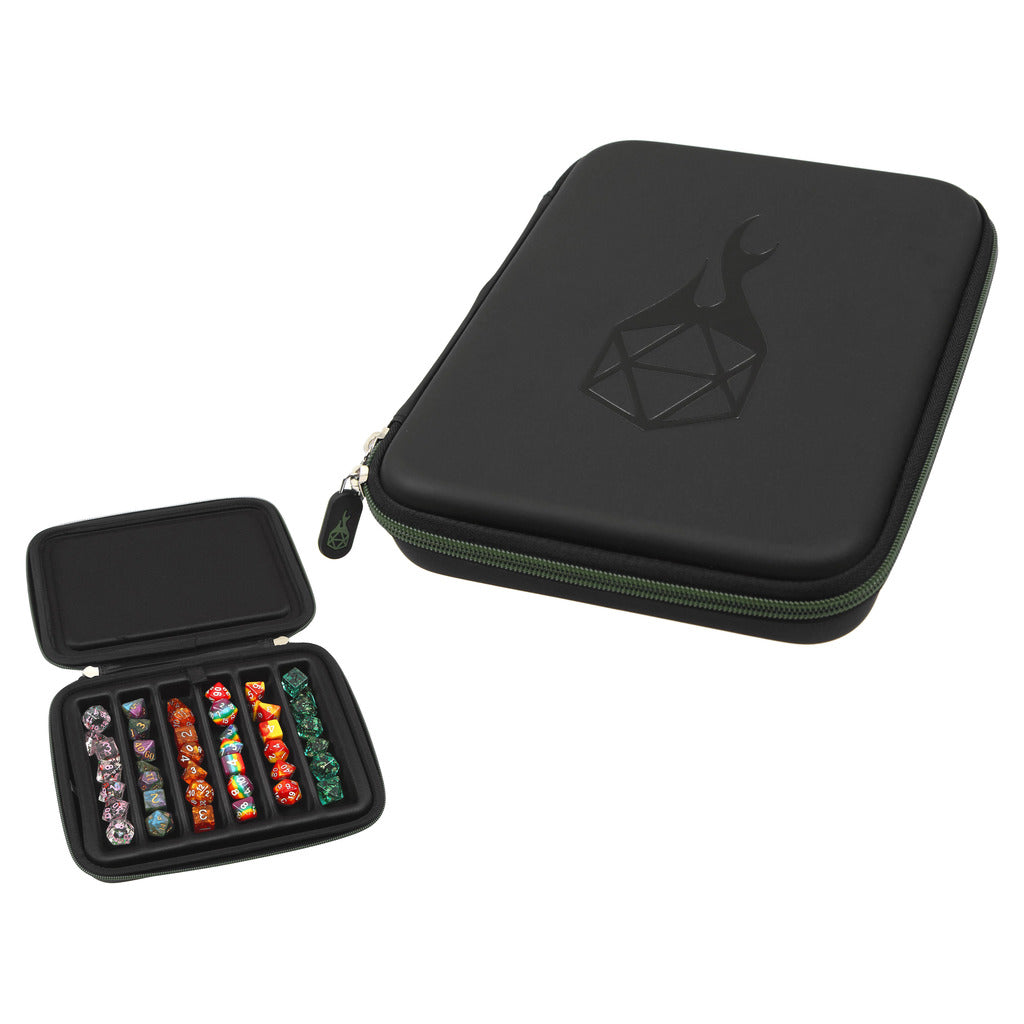 ATTENTION TO DETAIL: The cover comes embossed with the Forged Dice Co. flaming D20 logo as well as the zipper pulls. Inside the top lid is printed with the Forged Logo. This well thought out case can be used as storage, display and a tray to roll your dice