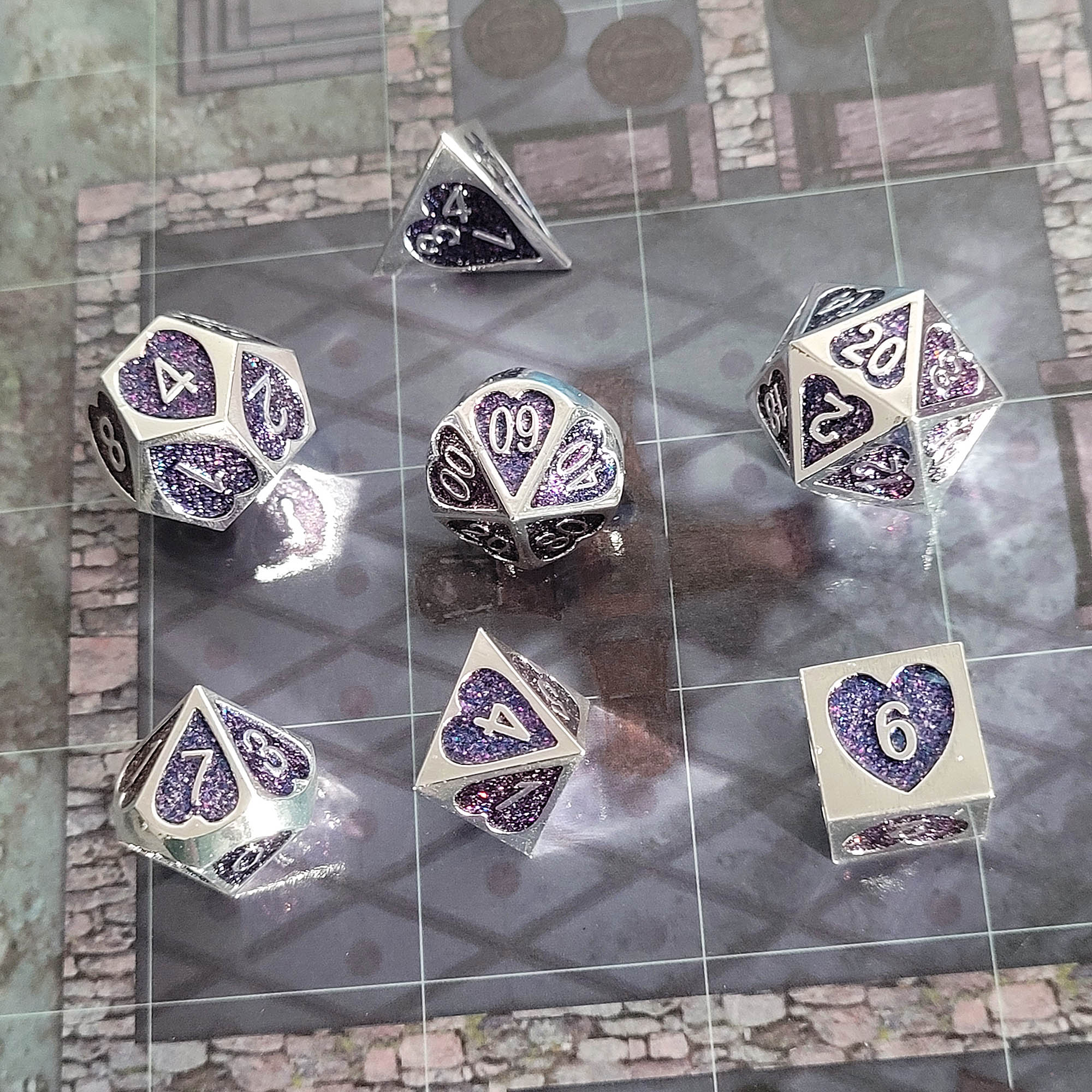 This heavy duty set of 7 polyhedral die are made of solid metal