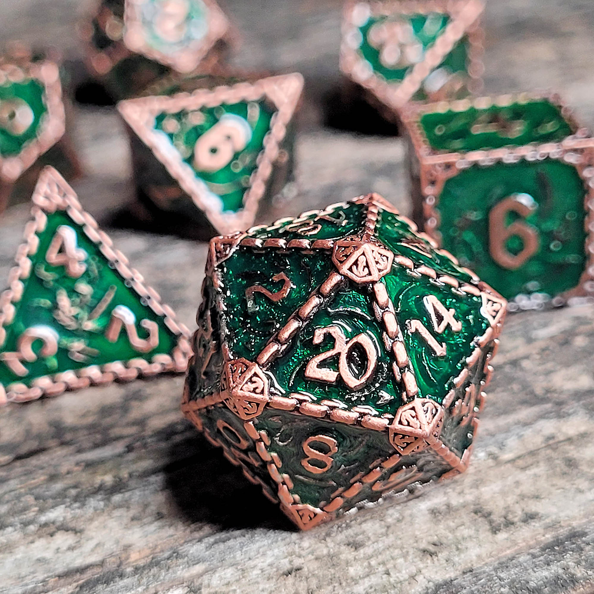 Brighid's Snaidhm Weathered Copper Metal RPG Dice Set