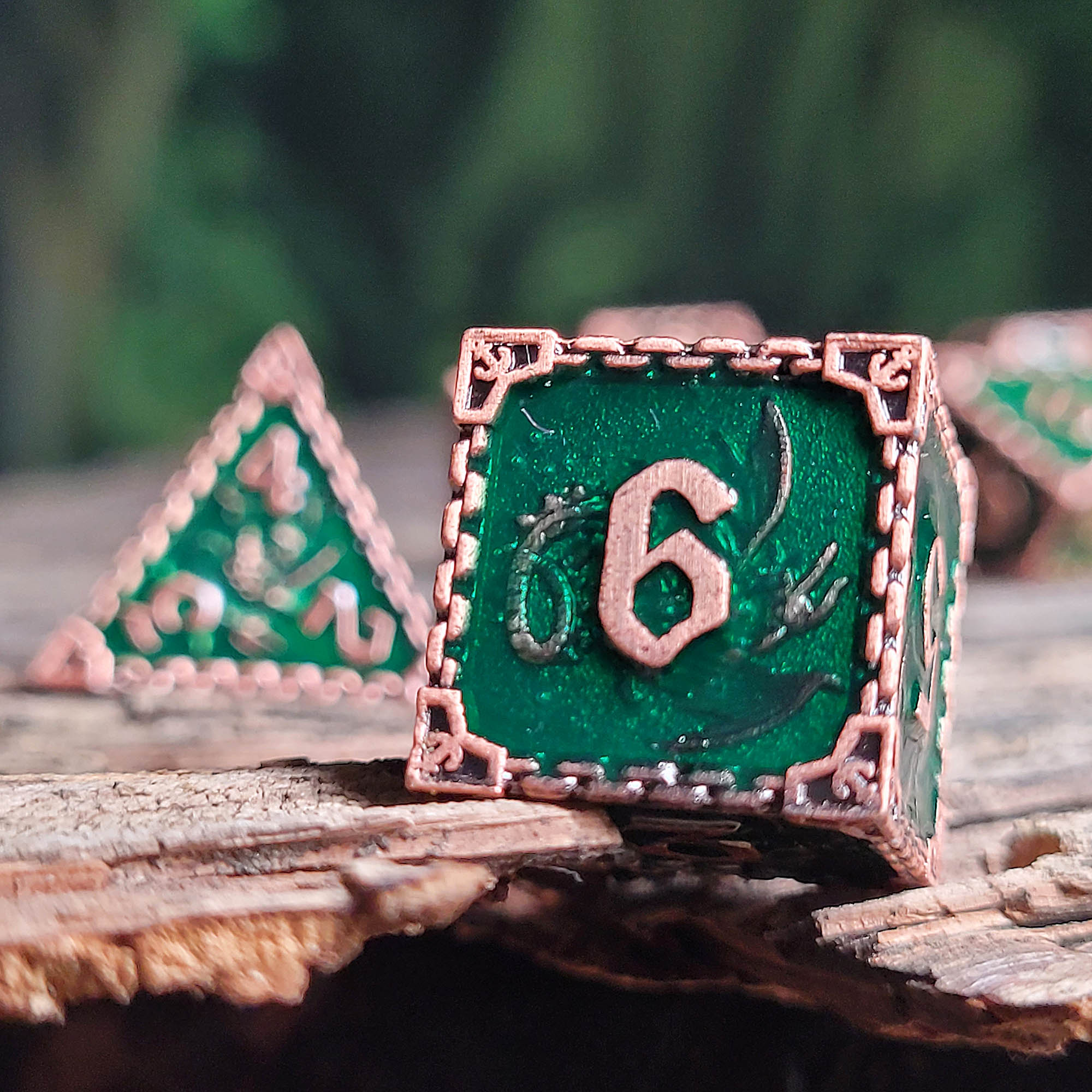 Wyrm's Mew Antique Copper Metal RPG Dice Set