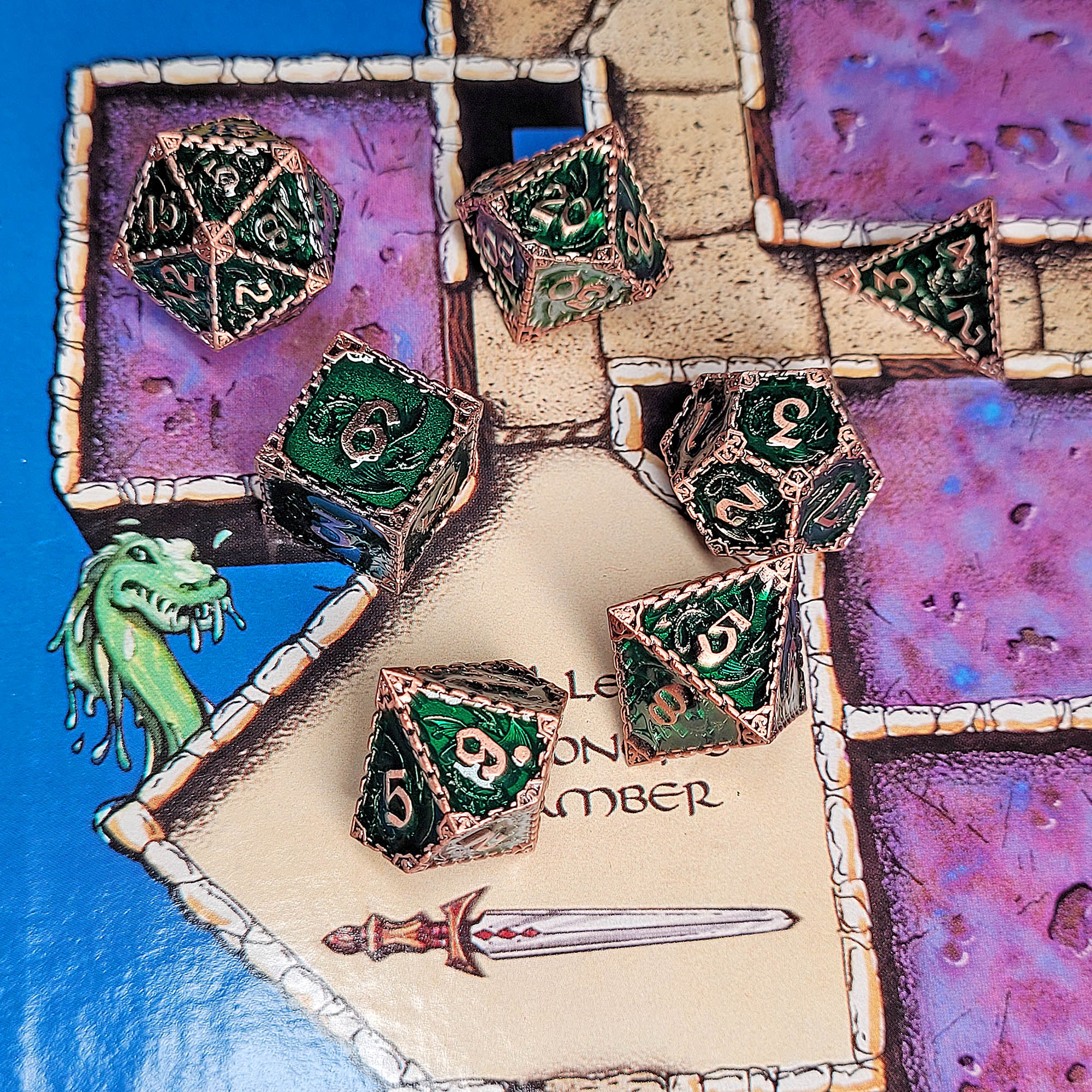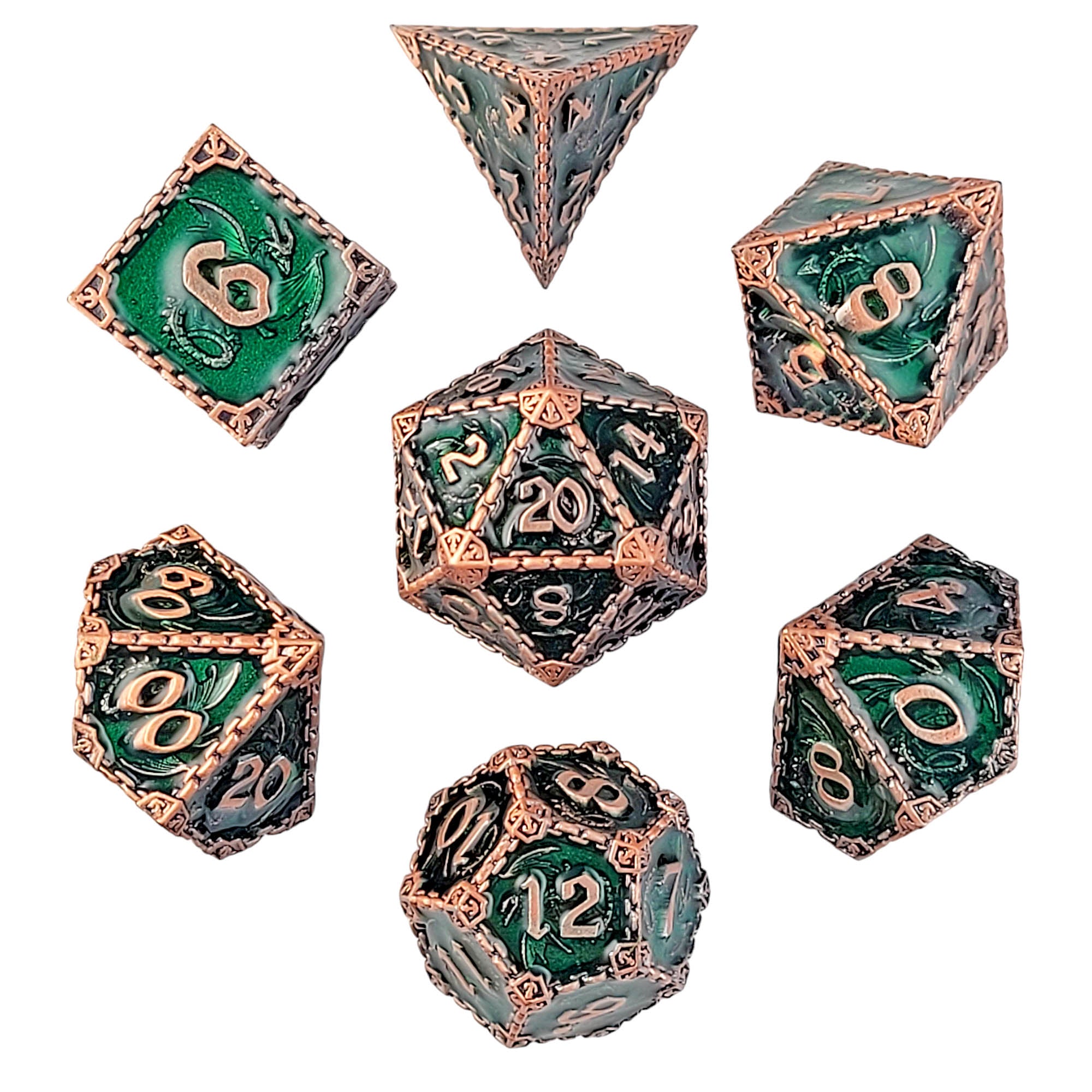 Dragon's Head Sigil Green Metal RPG Dice Set