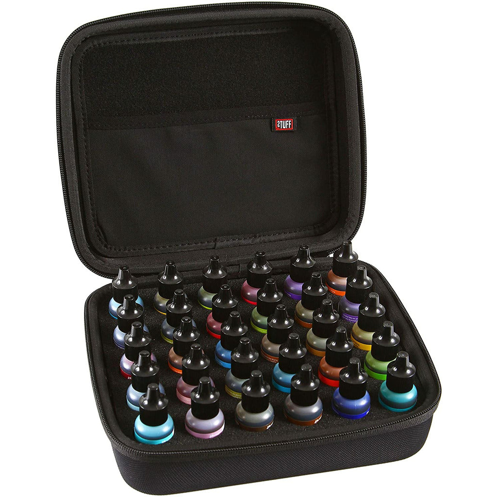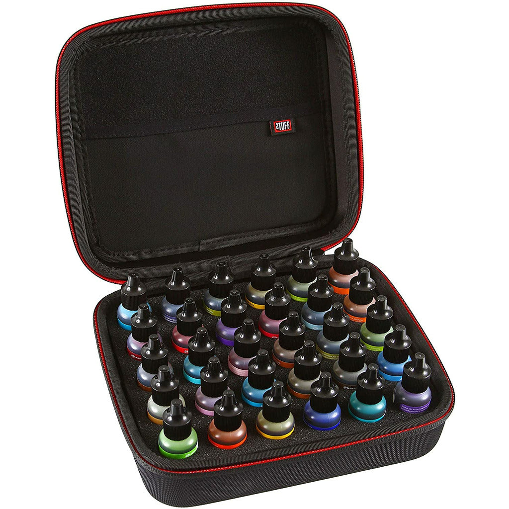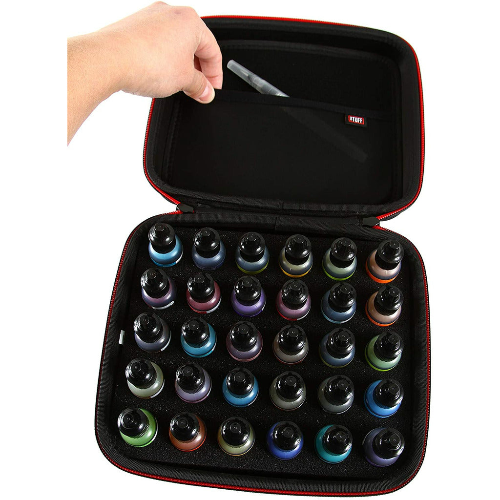 PERFECT FIT: This awesome case has 30 individual compartments and will fit many popular miniature paints like Reaper, Vallejo, and Army Painter. It will fit any paint or ink bottle up to 3" tall and 1" wide.