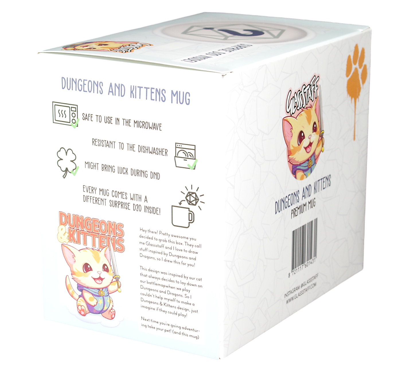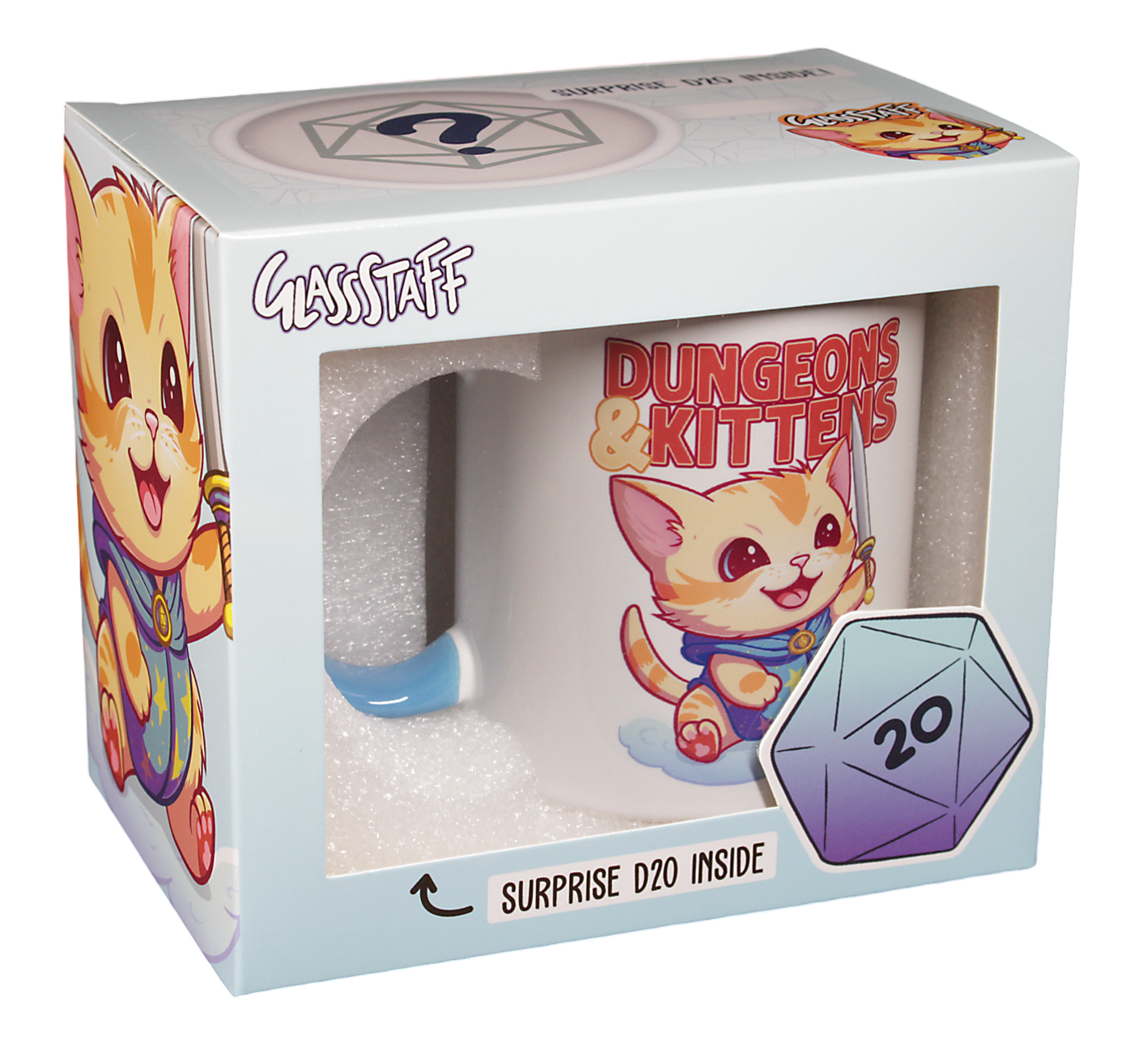 GlassStaff Dungeons & Kittens Coffee Mug with Surprise D20