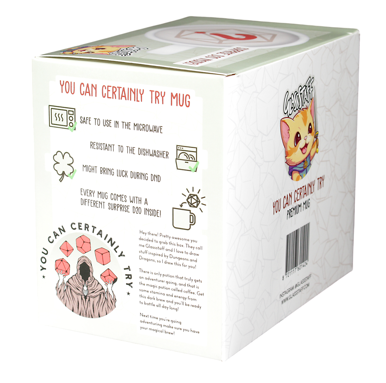 This DnD mug is perfect for coffee, tea and hot chocolate during those intense DnD sessions! The mug is printed with High quality sublimation printing, which makes it an appreciated gift to every true hot beverage lover. The design is printed on both sides of the mug, so you and your party members can enjoy it at the same time!