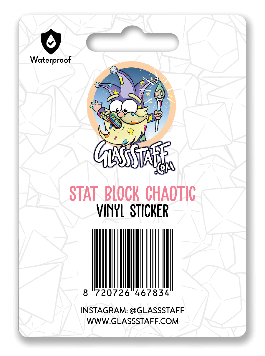 Chaotic Stat Block Waterproof Die Cut Vinyl Sticker