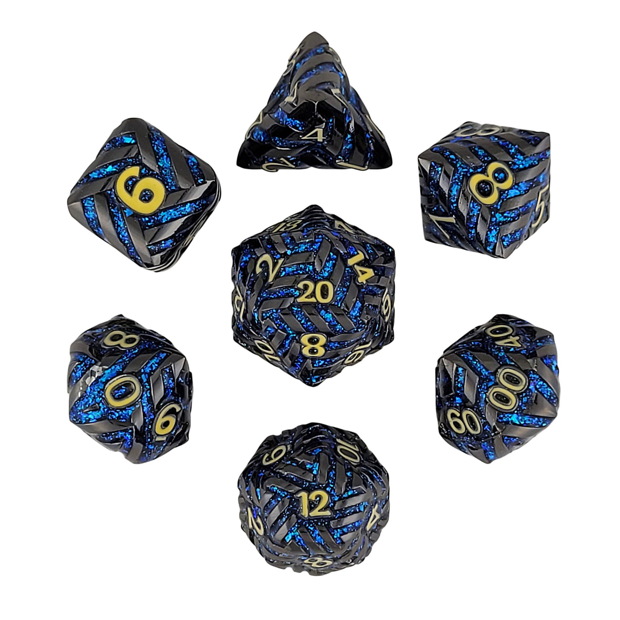 Guardian Matte Black Blue Glitter Metal RPG Dice Set of 7