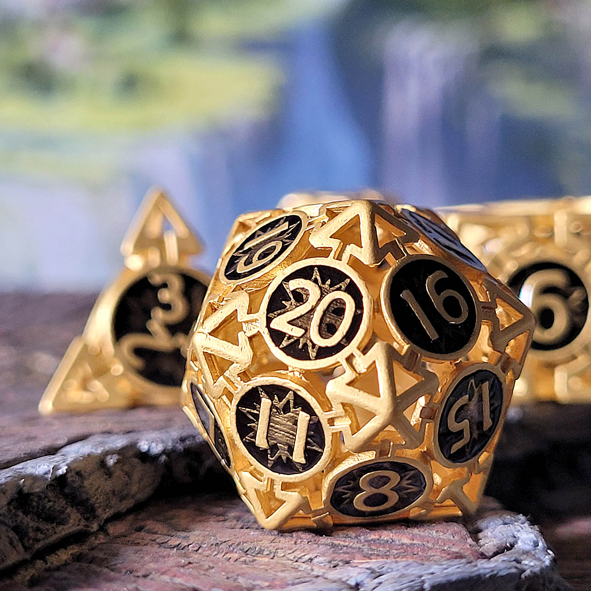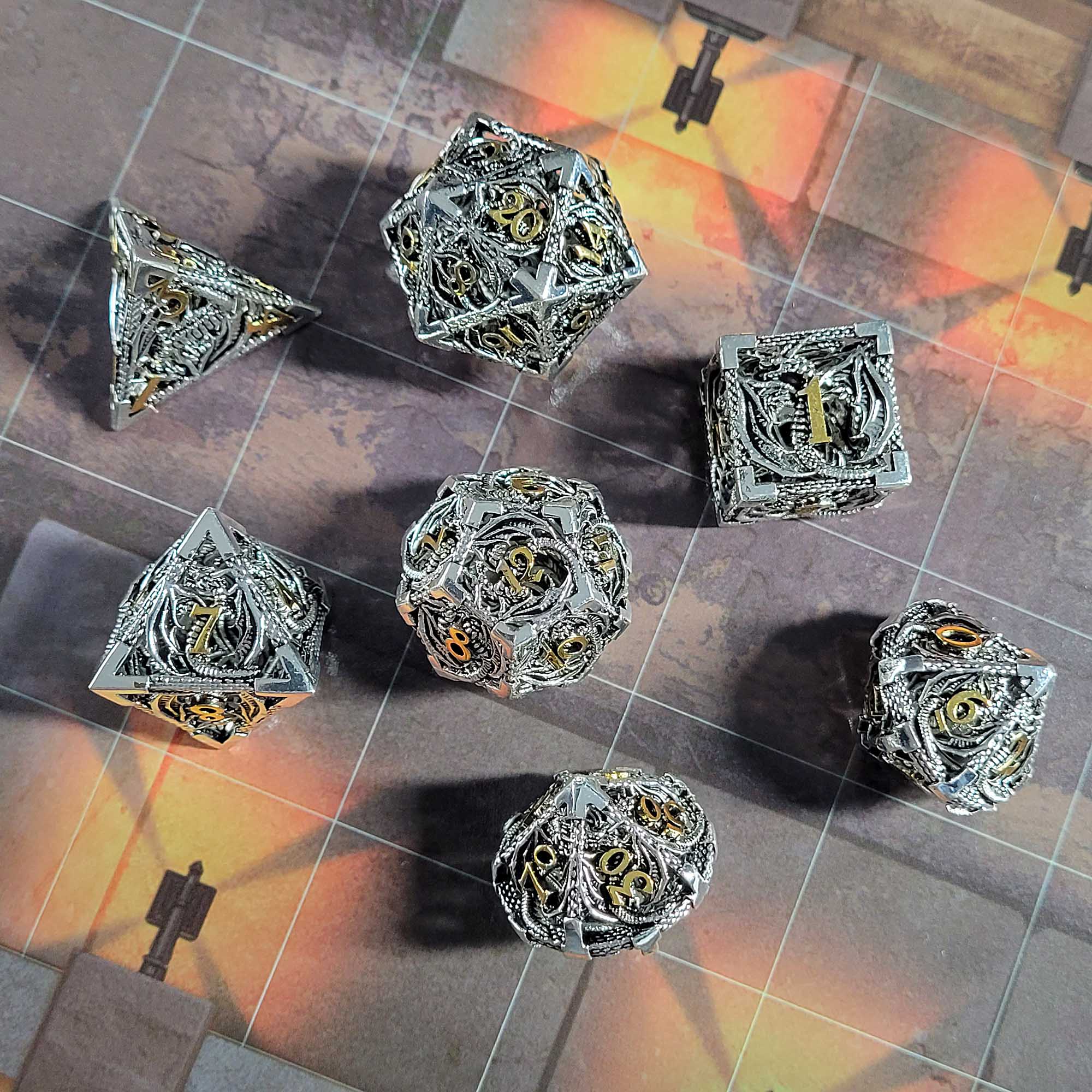 Ancient Gates Hollow Metal RPG Dice Set