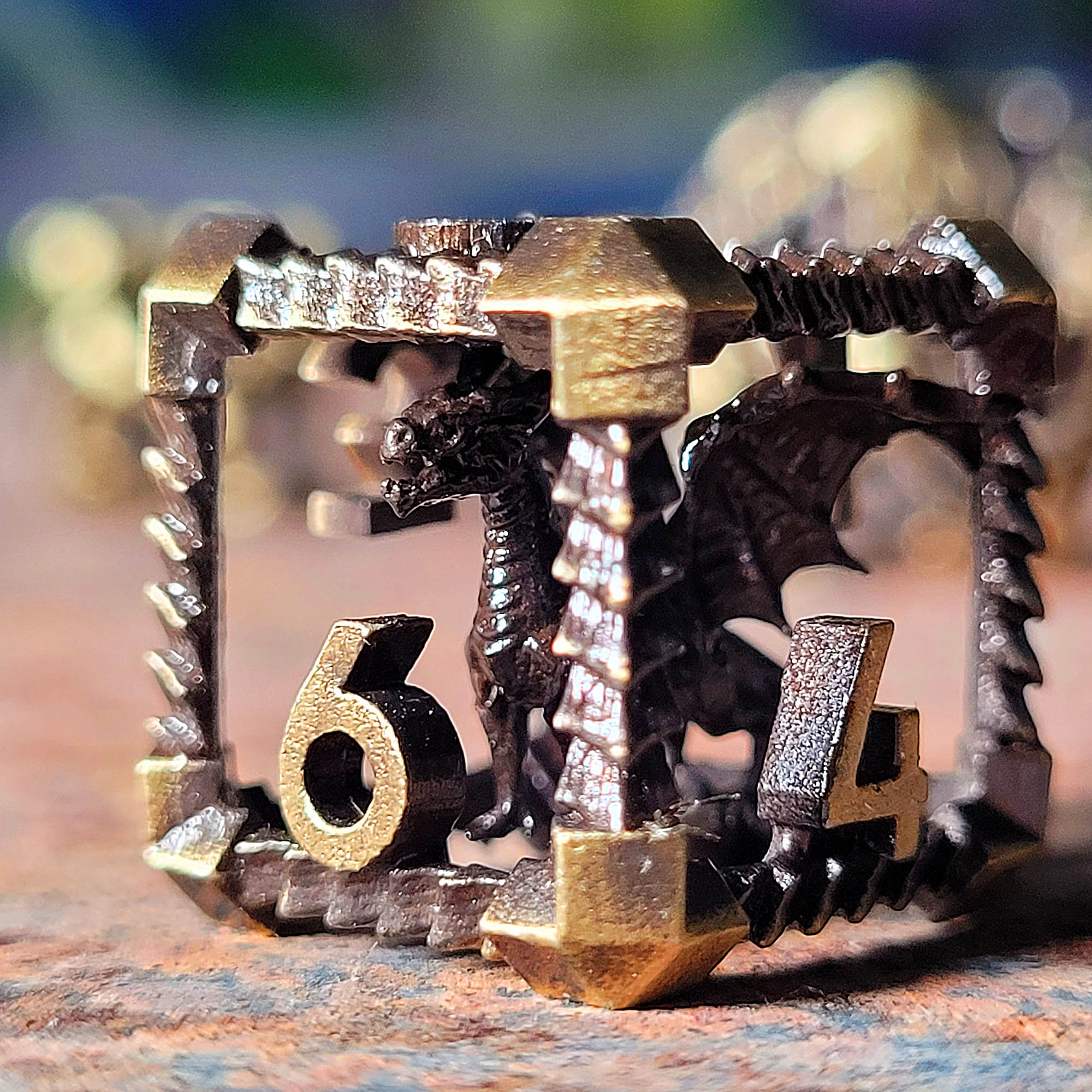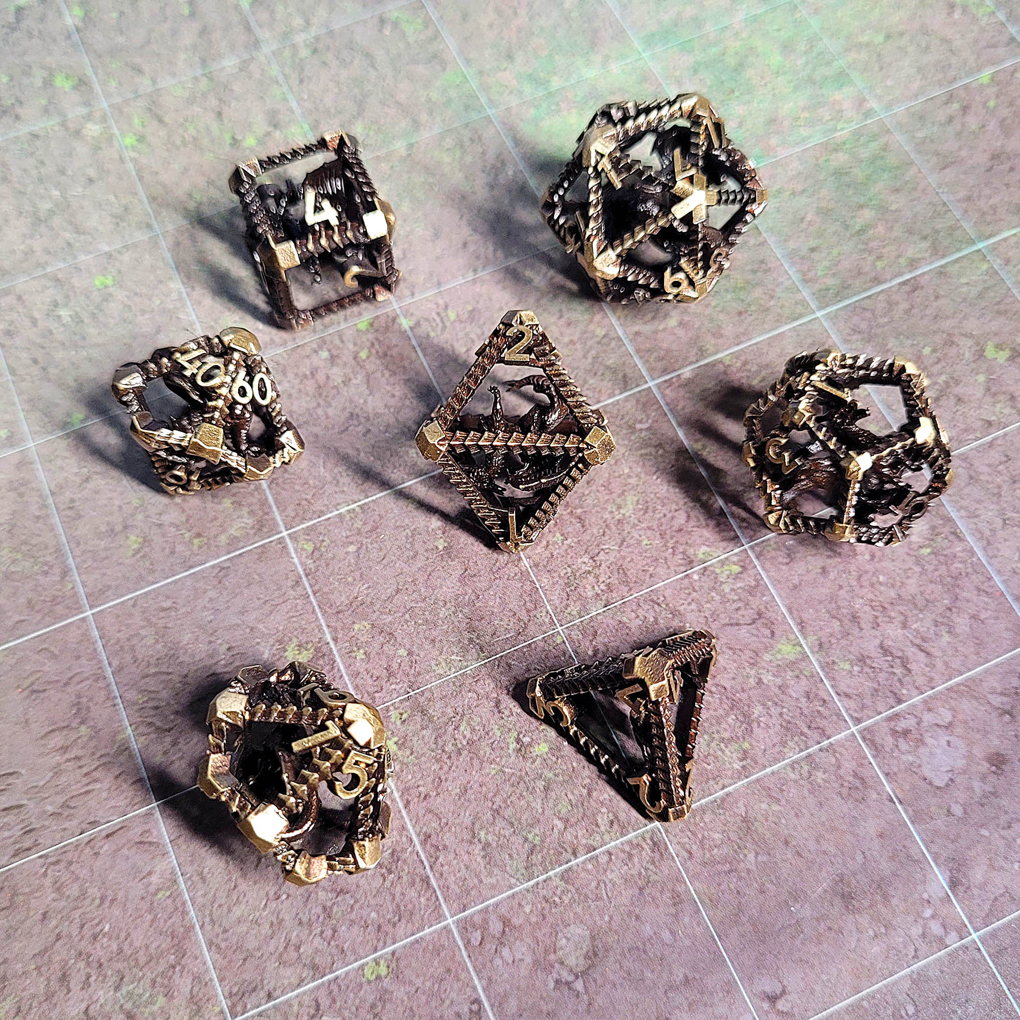 Dragon's Immure Antique Gold Hollow Metal RPG Dice Set