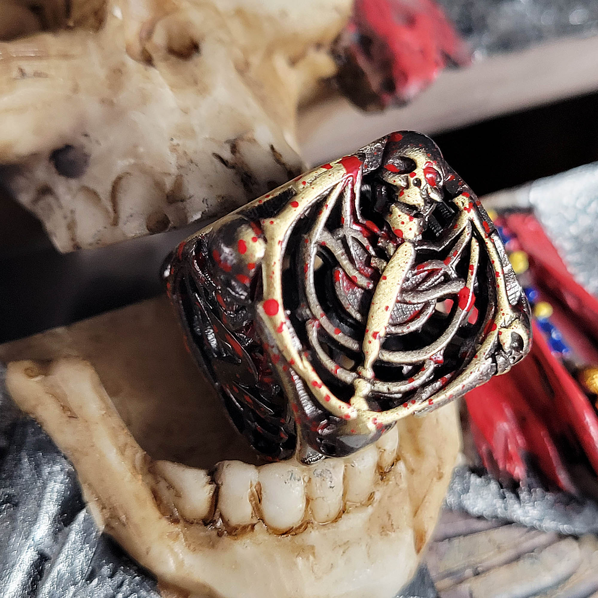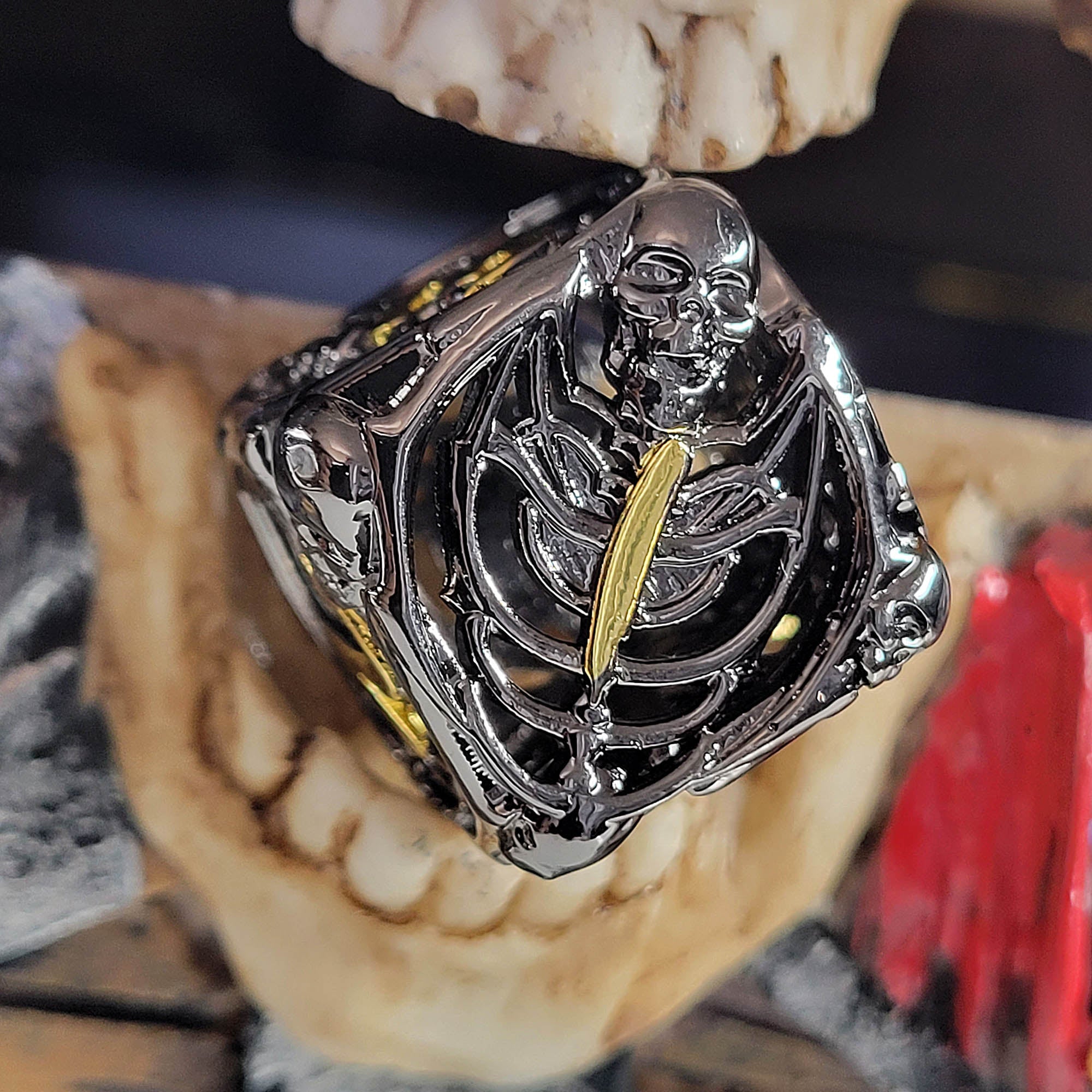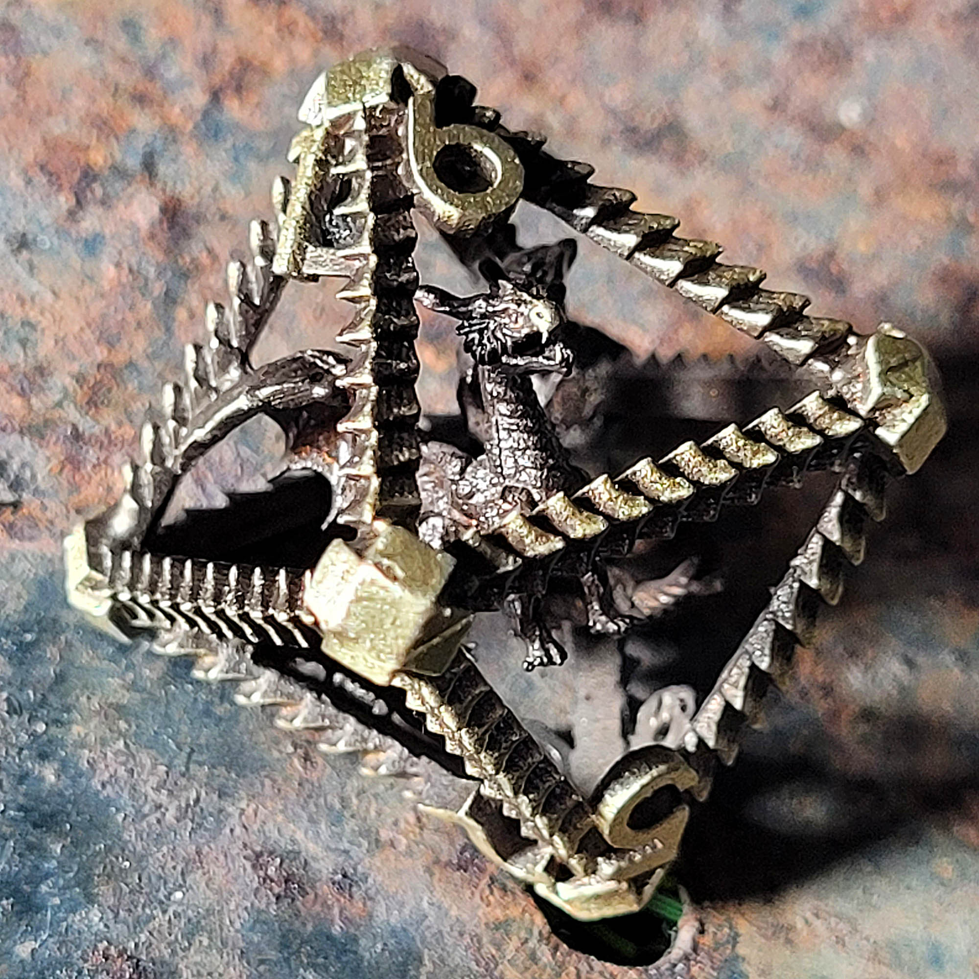 Lich's Throne Black Gold Hollow Metal RPG Dice Set
