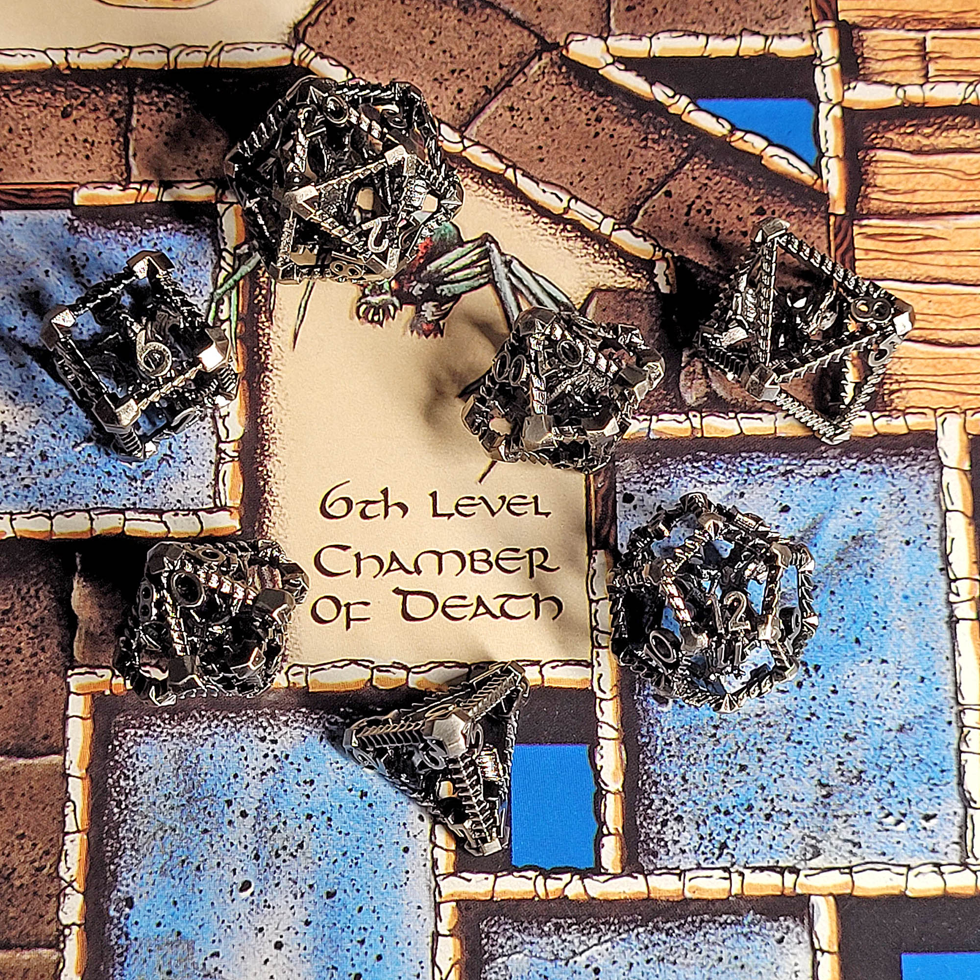 Silver Spider Hollow 7-Piece Metal Dice Set