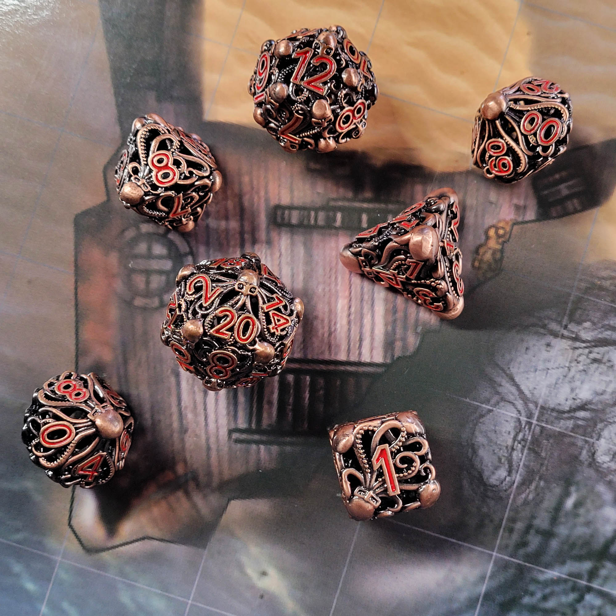 Fathomless Fate Copper Hollow Metal RPG Dice Set