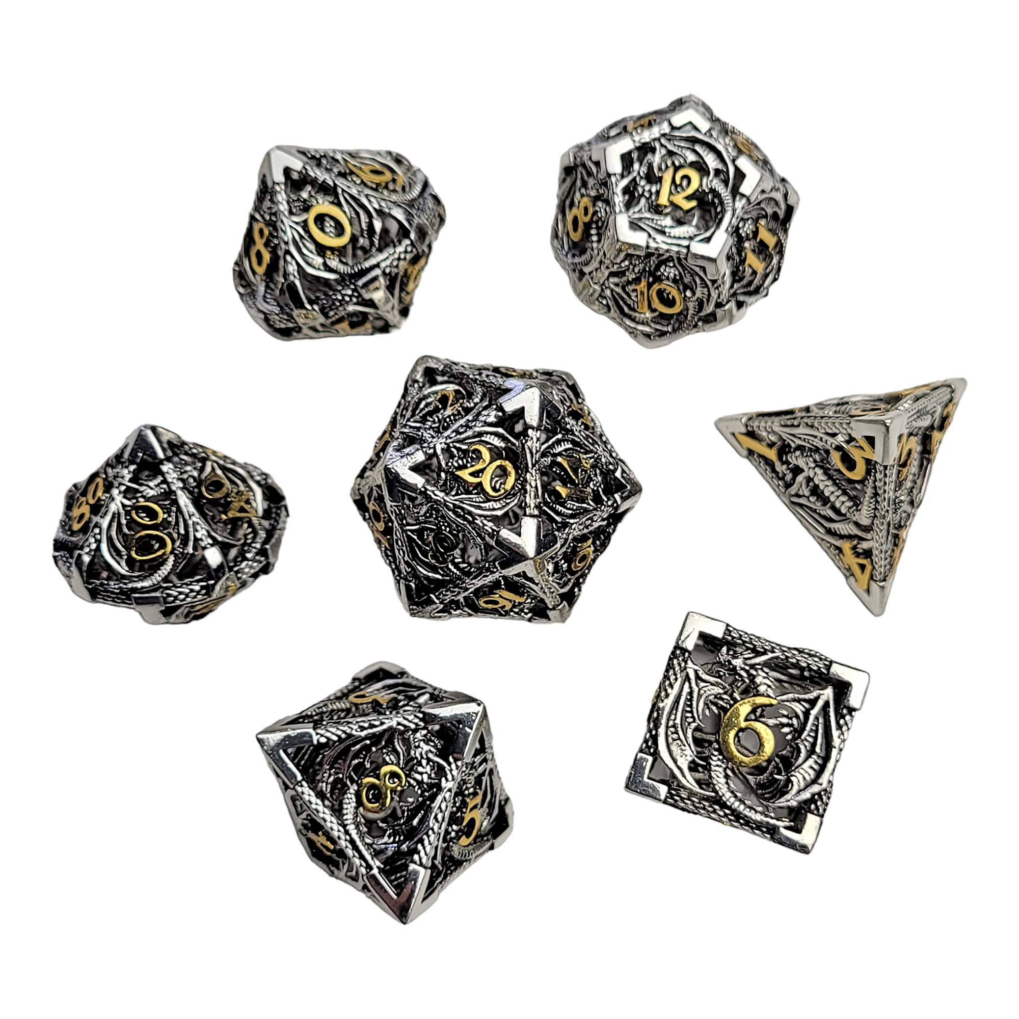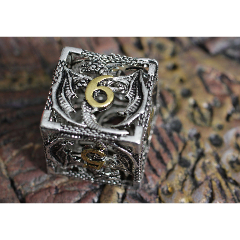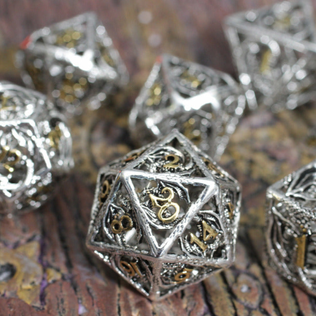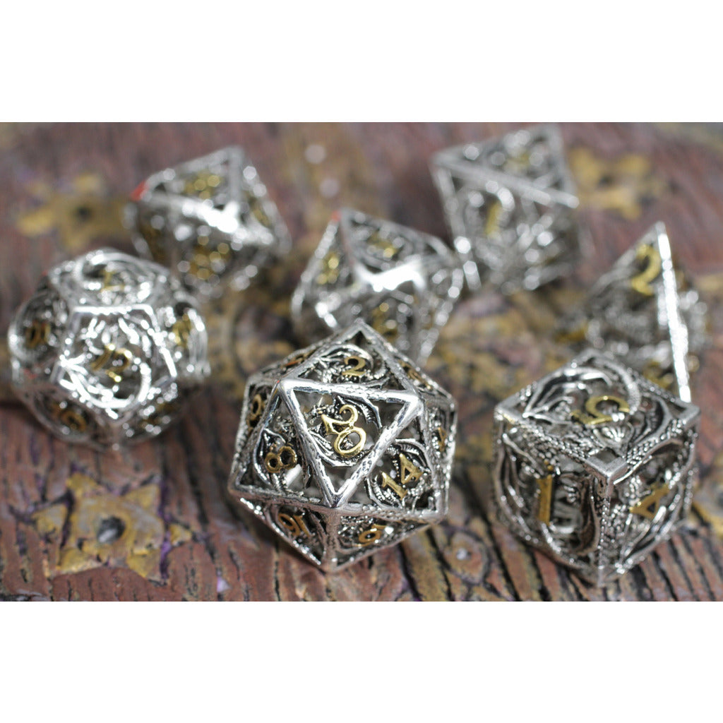 Dragon's Immure Antique Silver Hollow Metal RPG Dice Set
