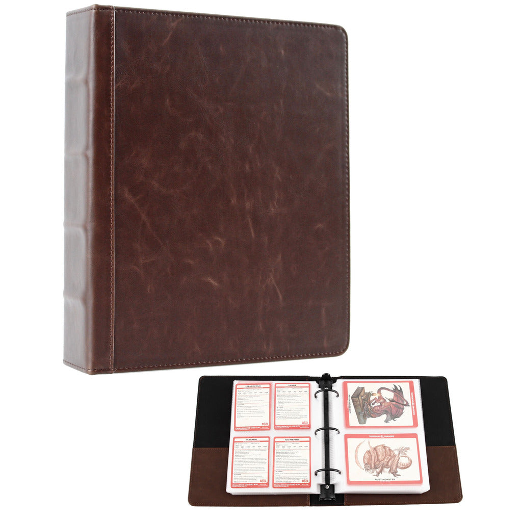 - CUSTOM PAGES: The only binder and organizer for monster cards and spellbook cards that include custom pages to fit large monster cards and standard size cards. Included are 40 - 2 slot pages that fit the large D&D Monster Cards fitting a total of 80 large monster cards. Plus 40 - 4 slot pages enough to fit up to 160 standard size monster cards or spellbook cards