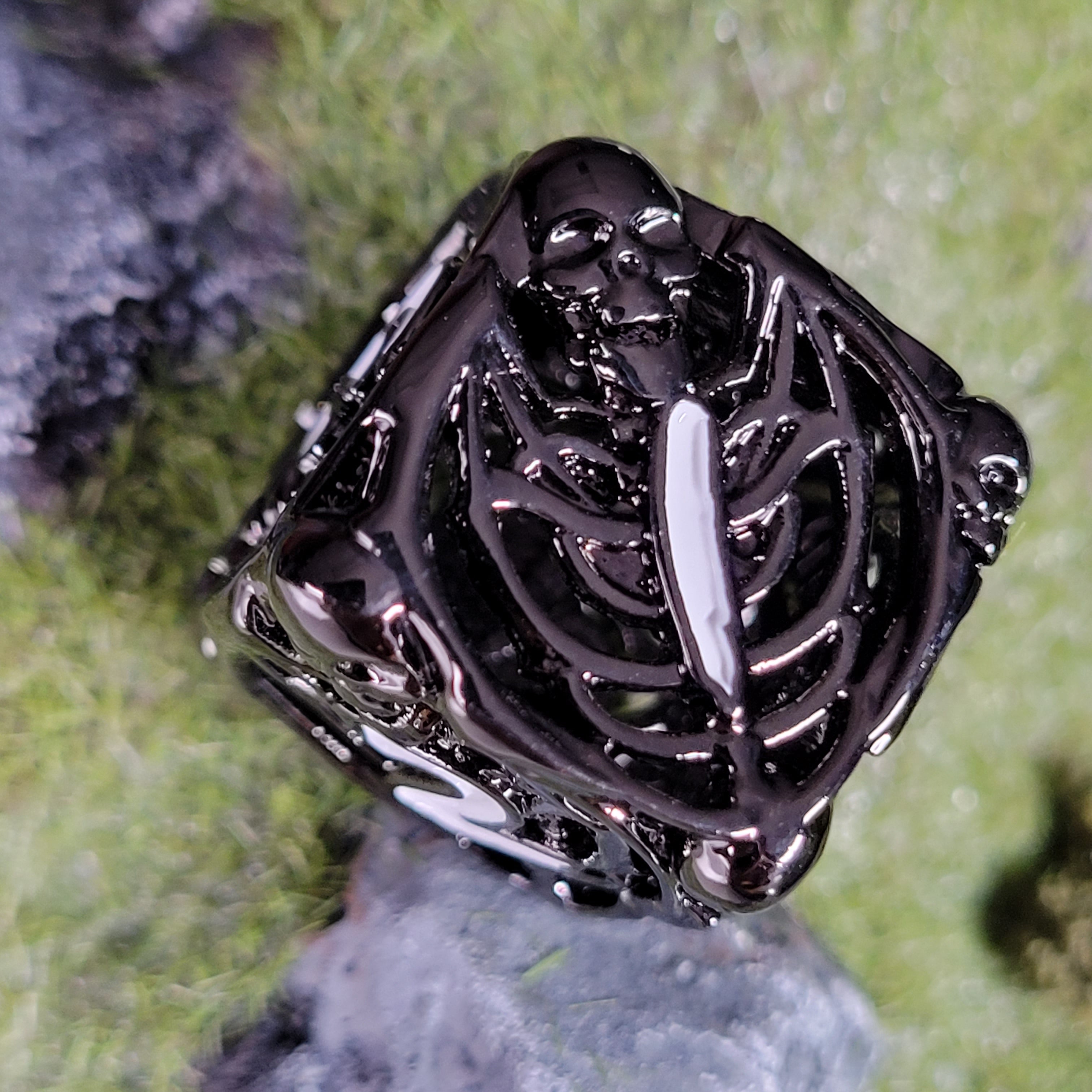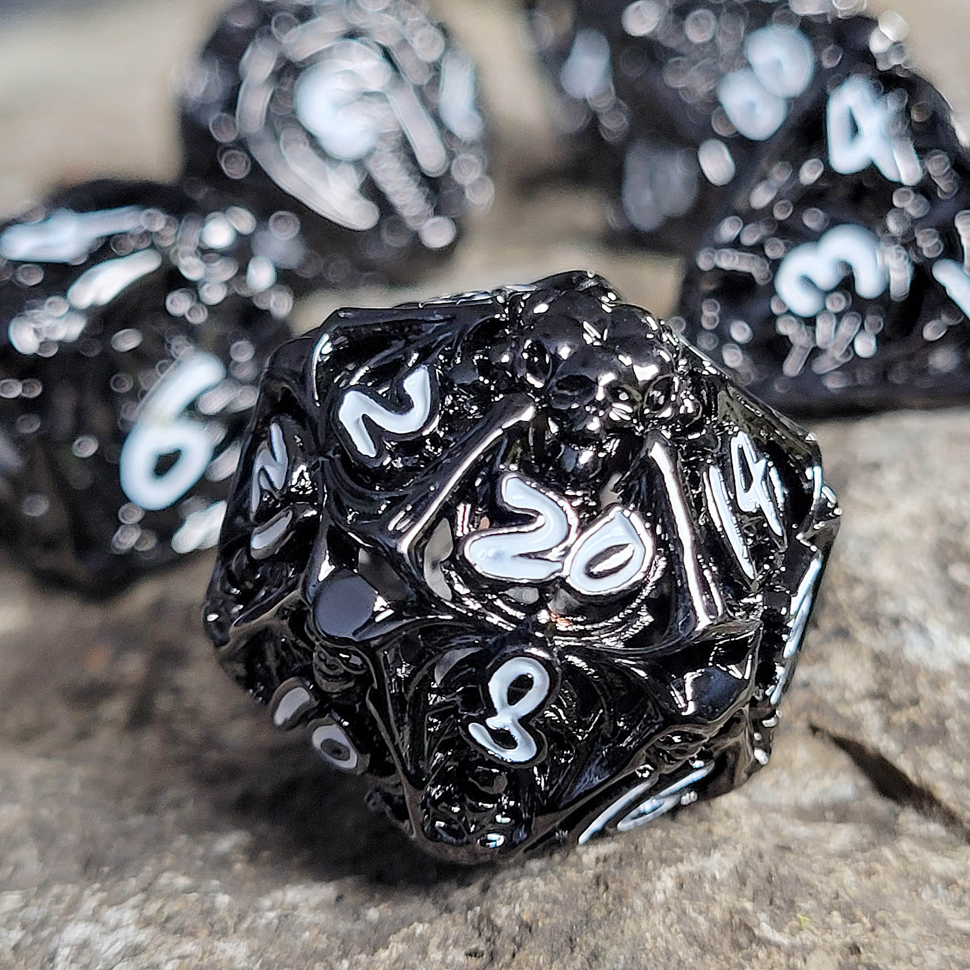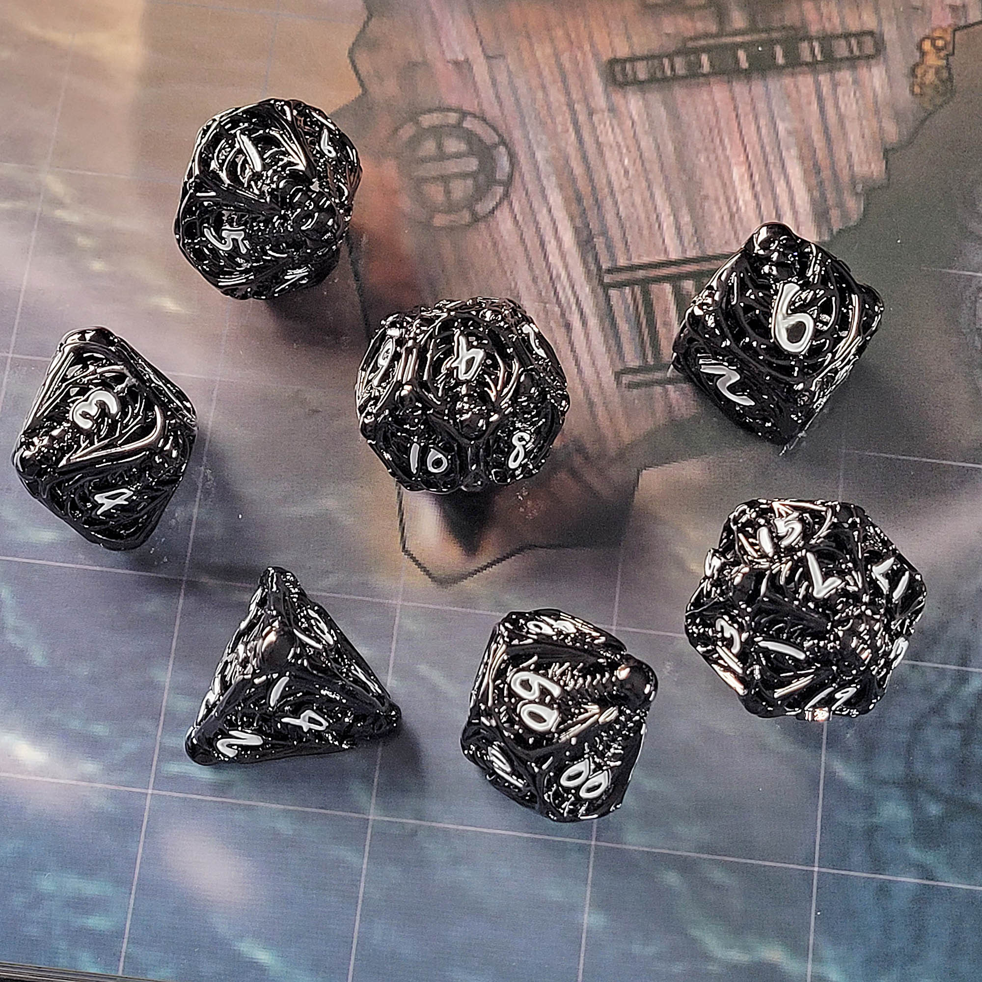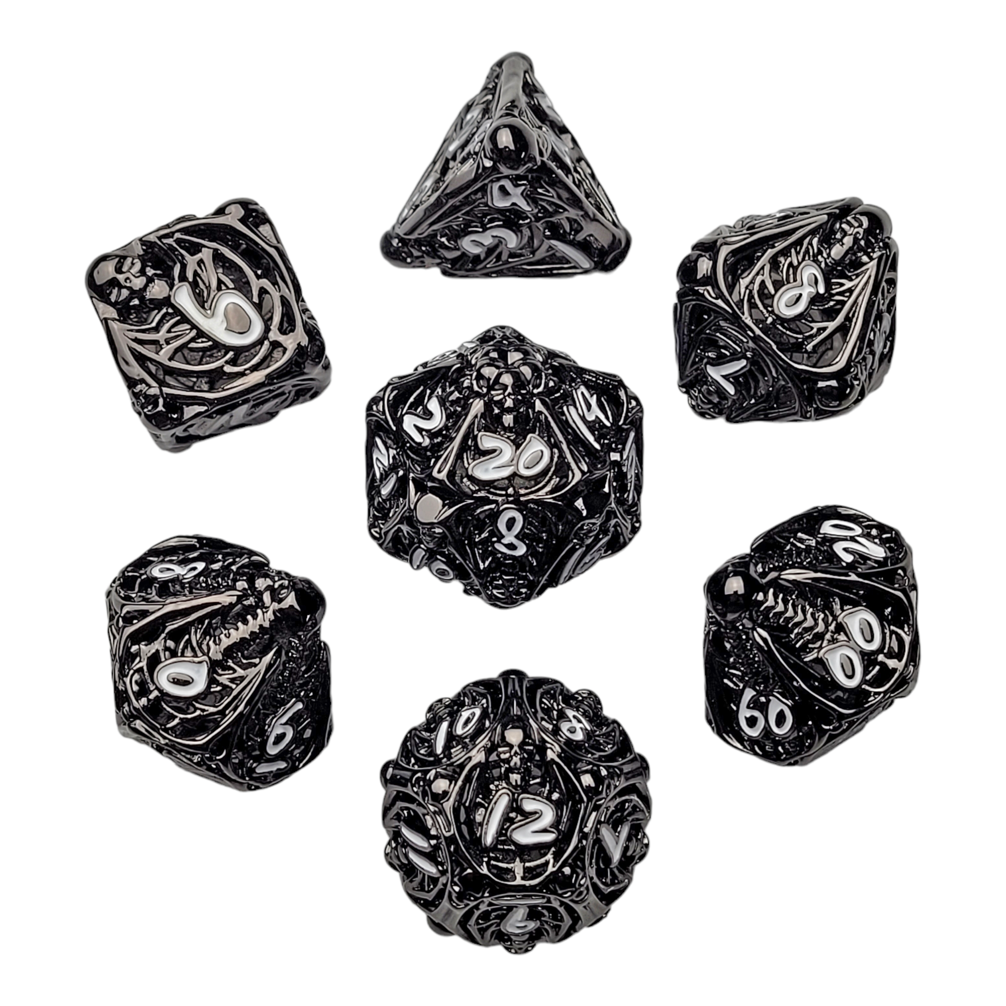 Lich's Throne Black White Hollow Metal RPG Dice Set of 7