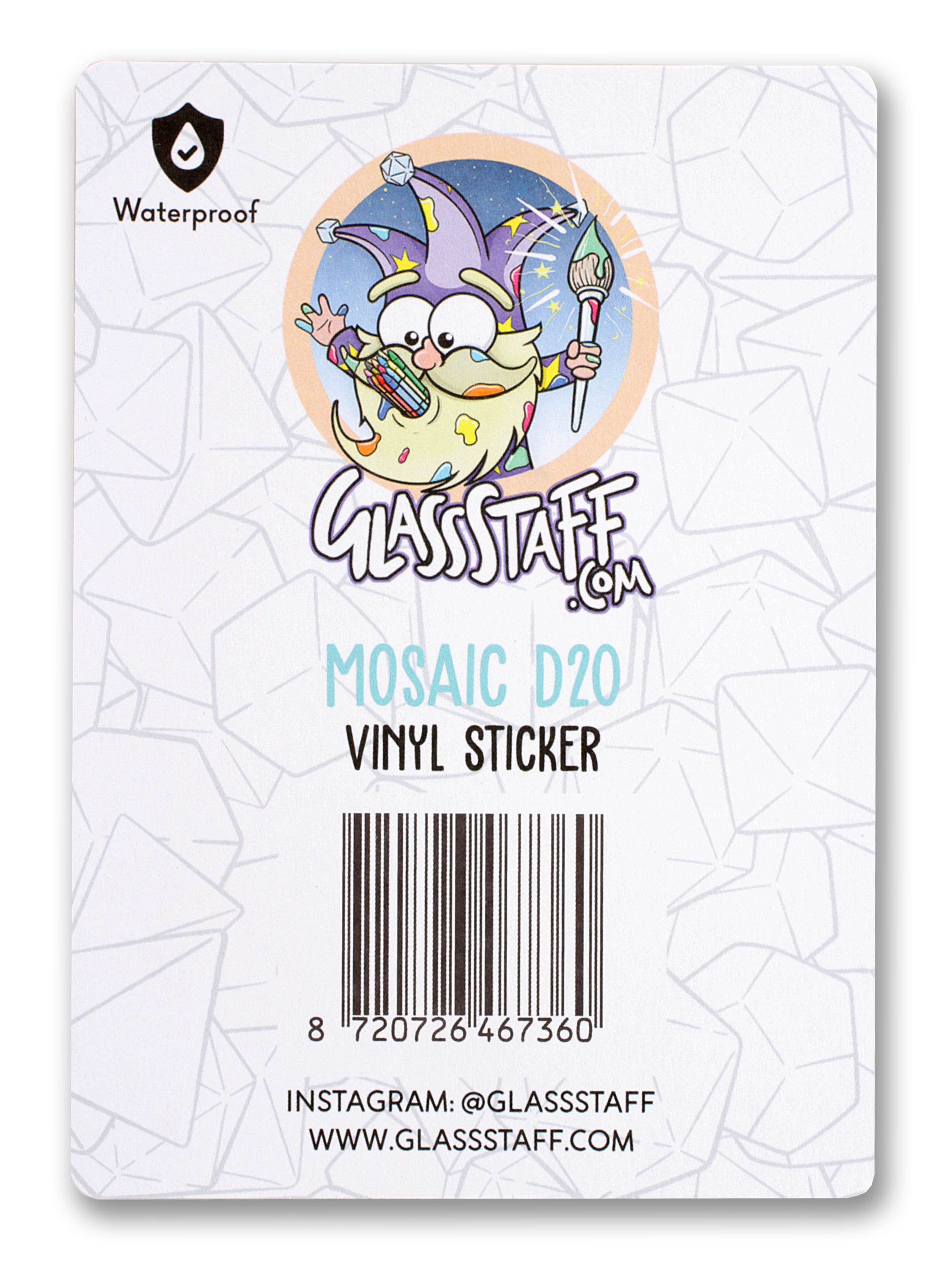 Mosaic D20 Waterproof Die Cut Vinyl Sticker