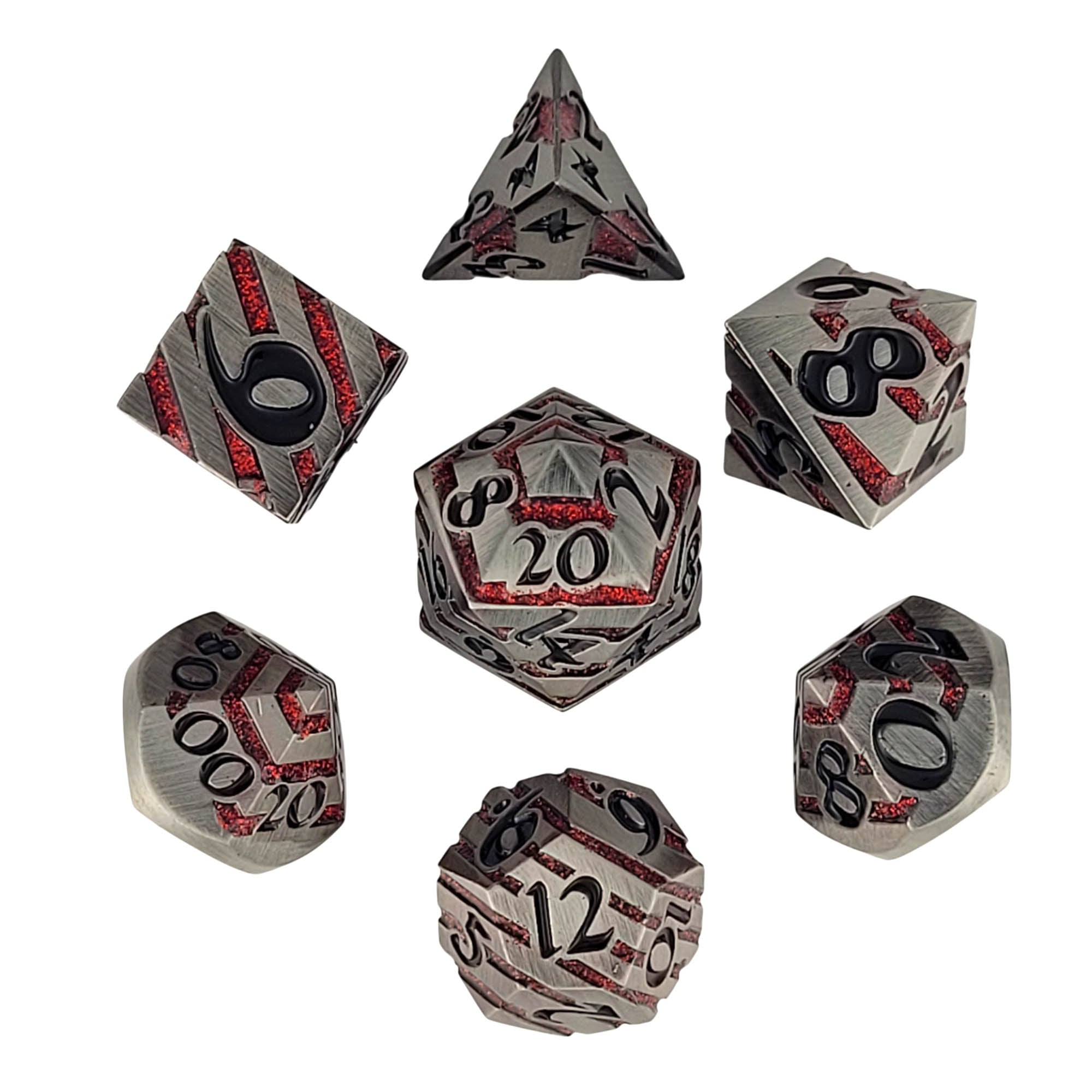 This set has a brushed silver enamel finish with red glitter banding and black numbers.
