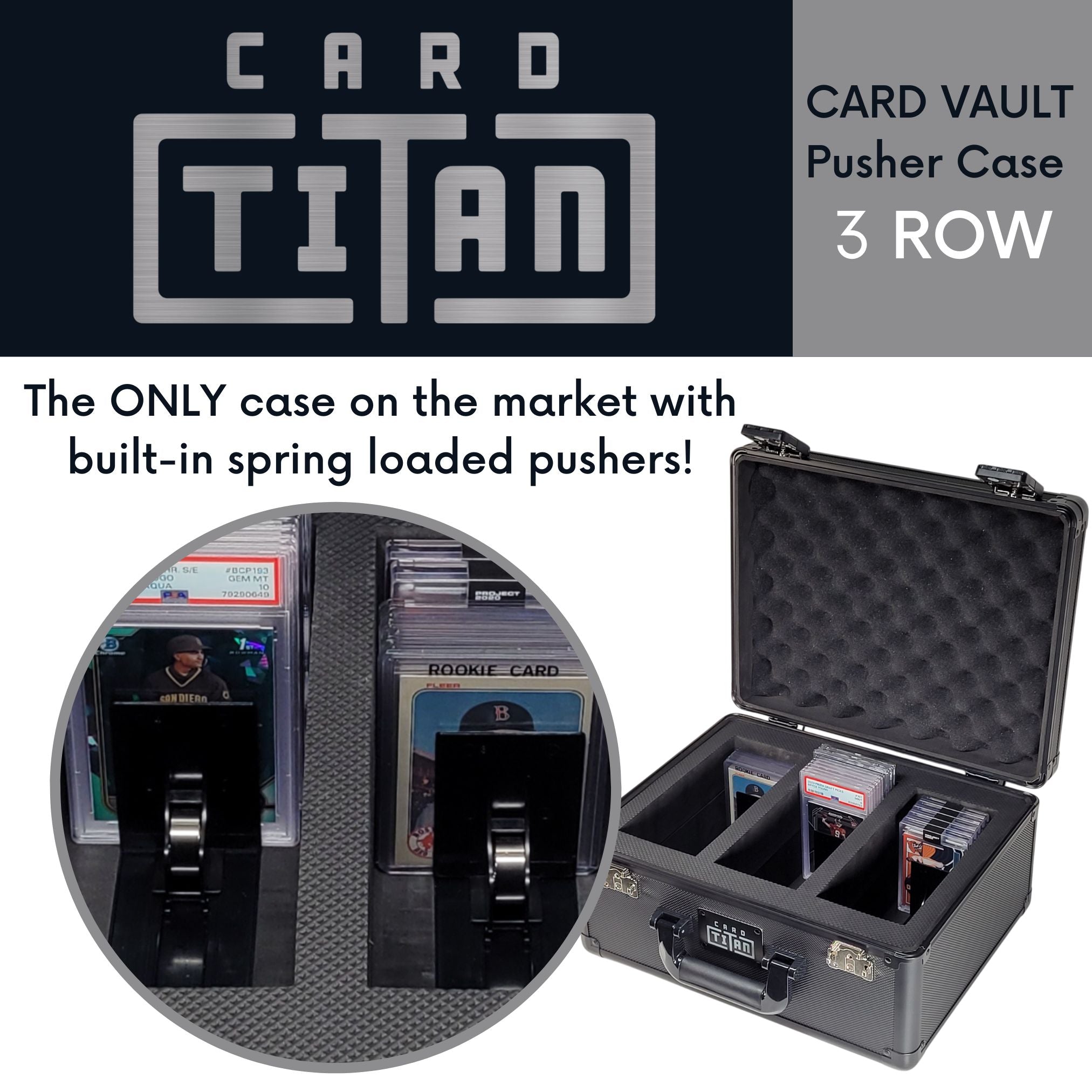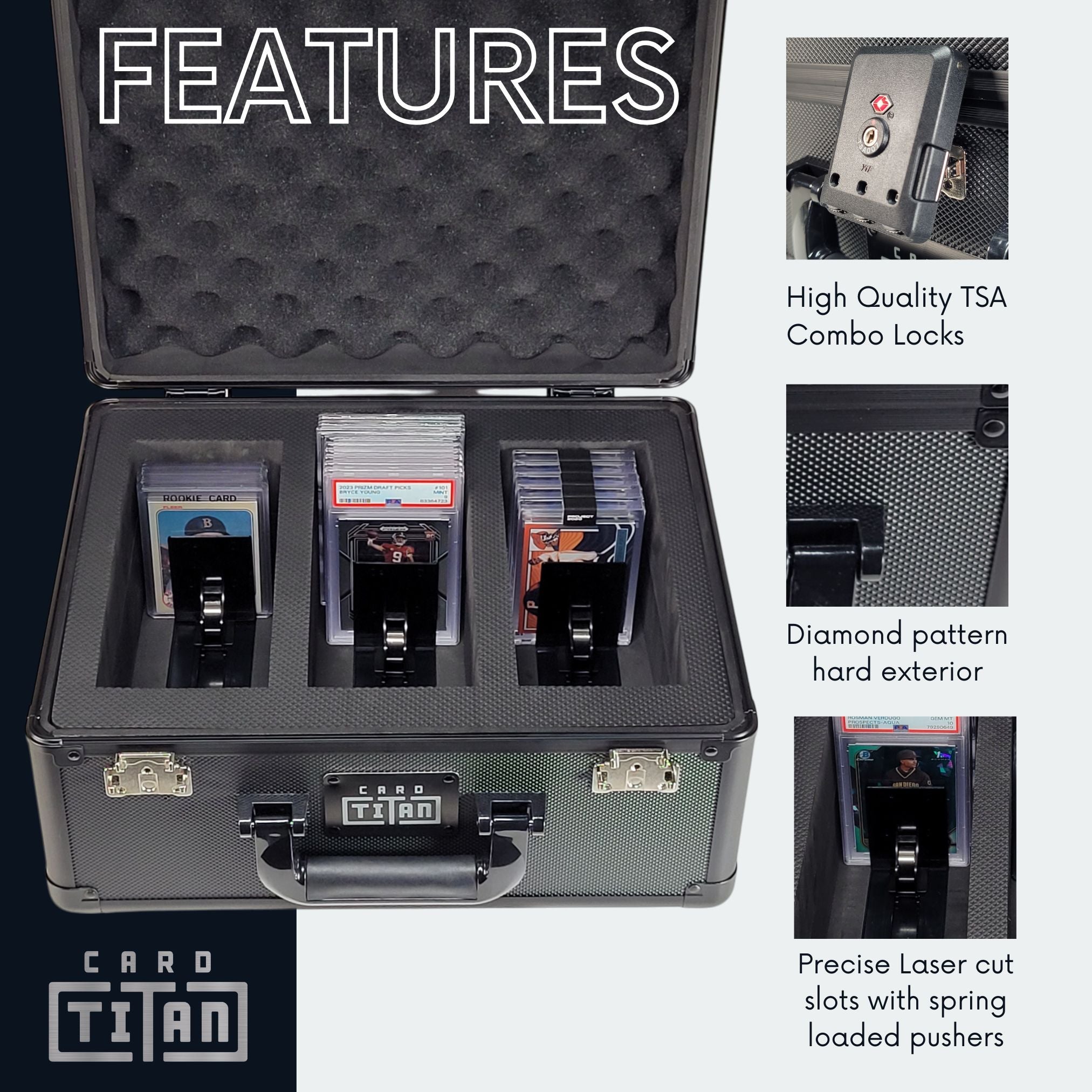 Built of high grade ABS diamond pattern PVC, the Card Titan Card Vault is STRONG, SECURE and DURABLE!