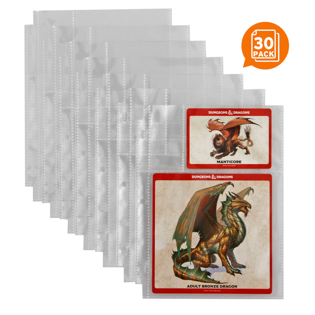 SIZE: Page size is 6 inches by 8 inches. Each 2-slot page is designed to fit 1 Epic D&D Monster Card and 1 Standard-size card. The larger Epic pocket (5.25" x 5") holds an epic-size monster card and the smaller standard pocket (2.5 x 3.5) holds a standard-size card.
