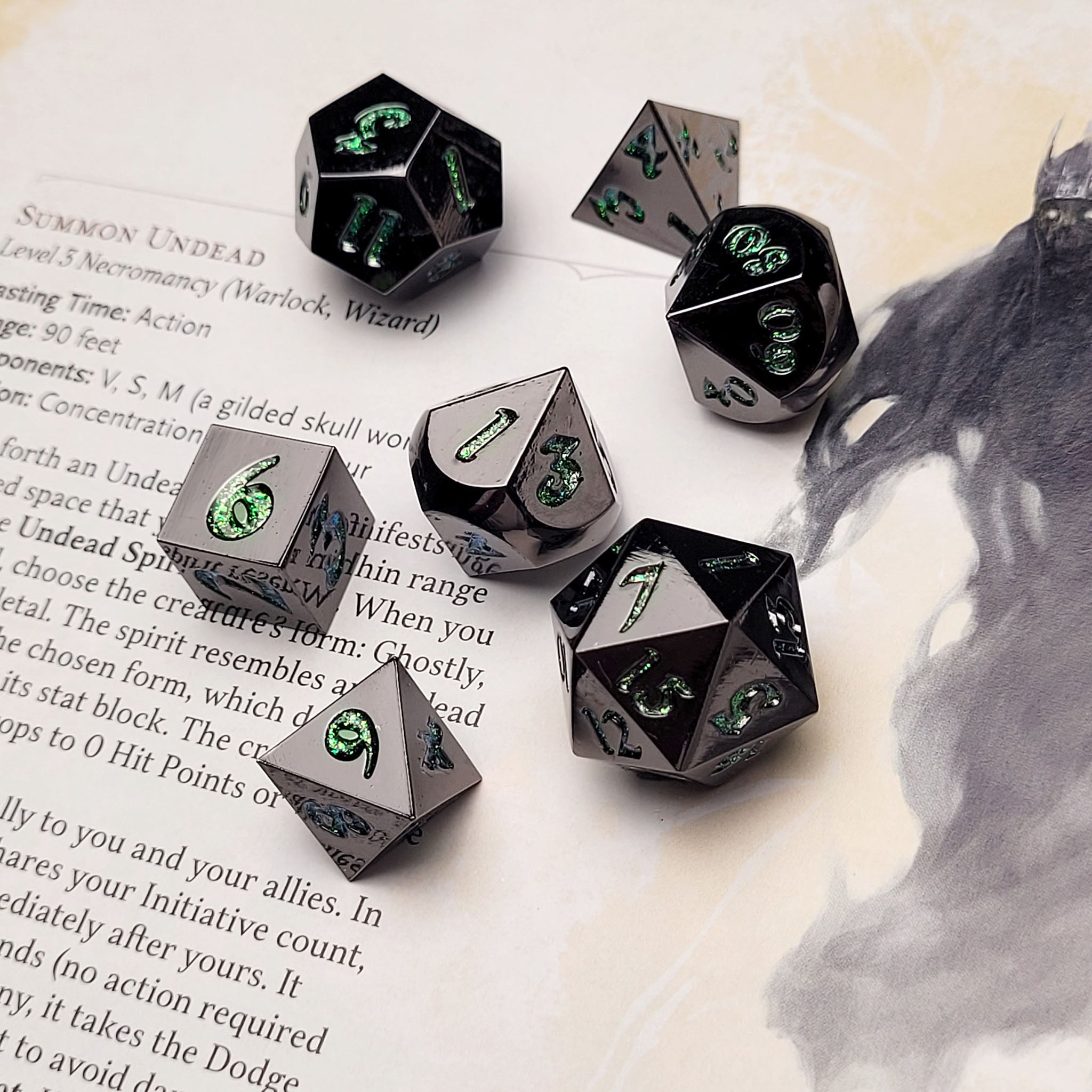 - This heavy duty set of 7 polyhedral dice is made of solid METAL