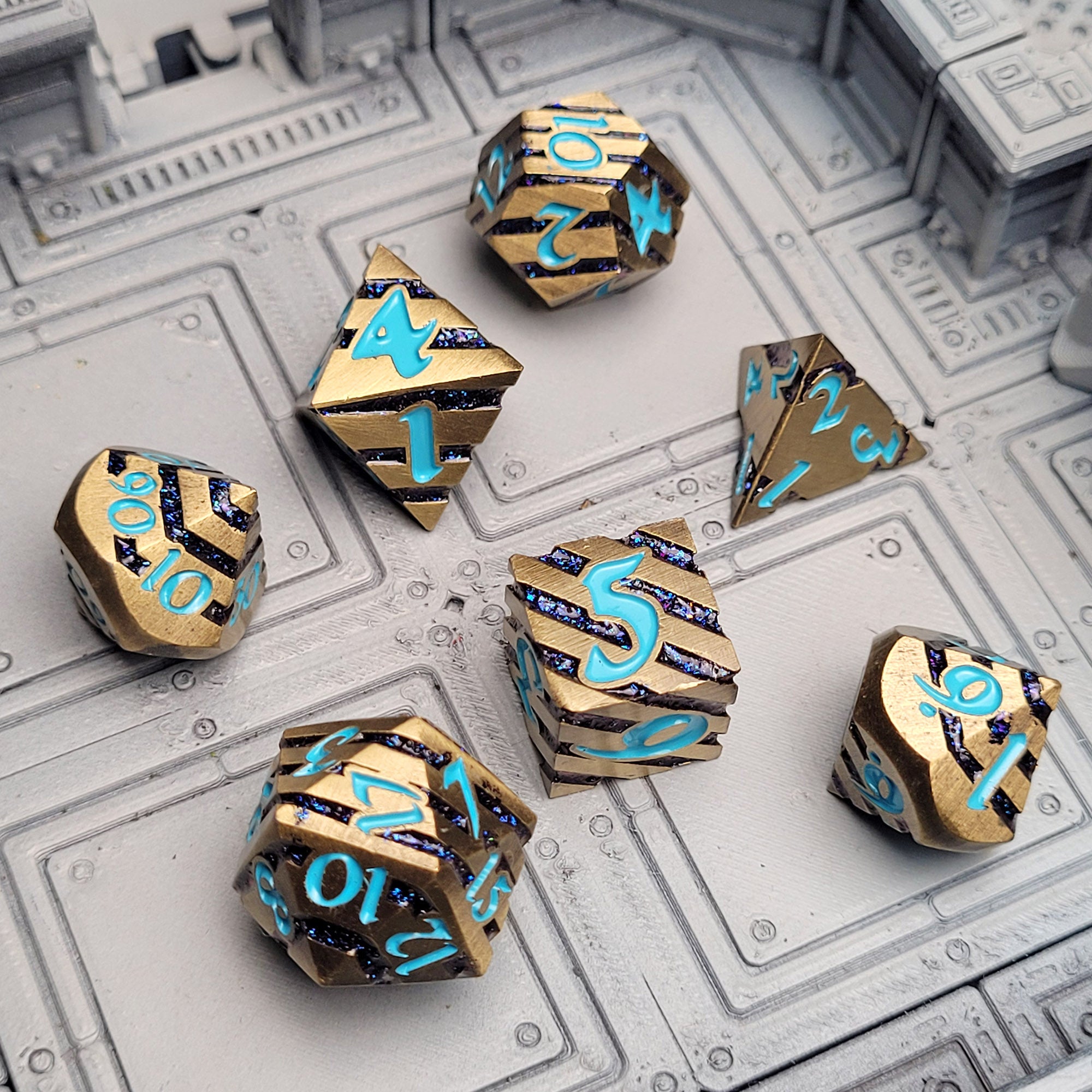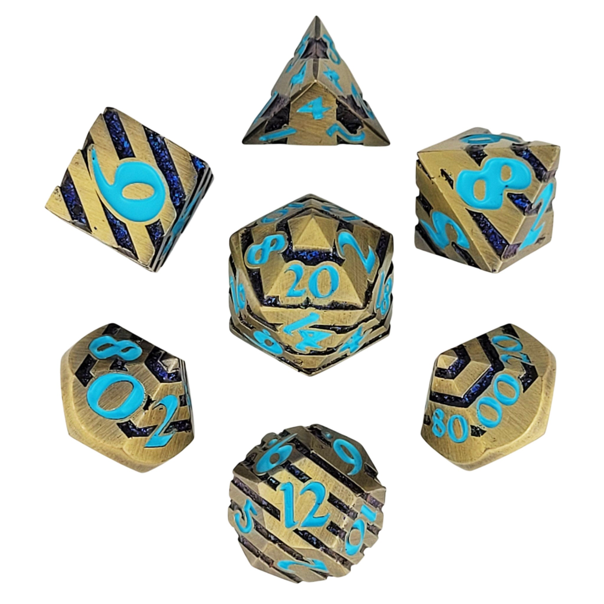 - This heavy duty set of 7 polyhedral dice is made of solid METAL