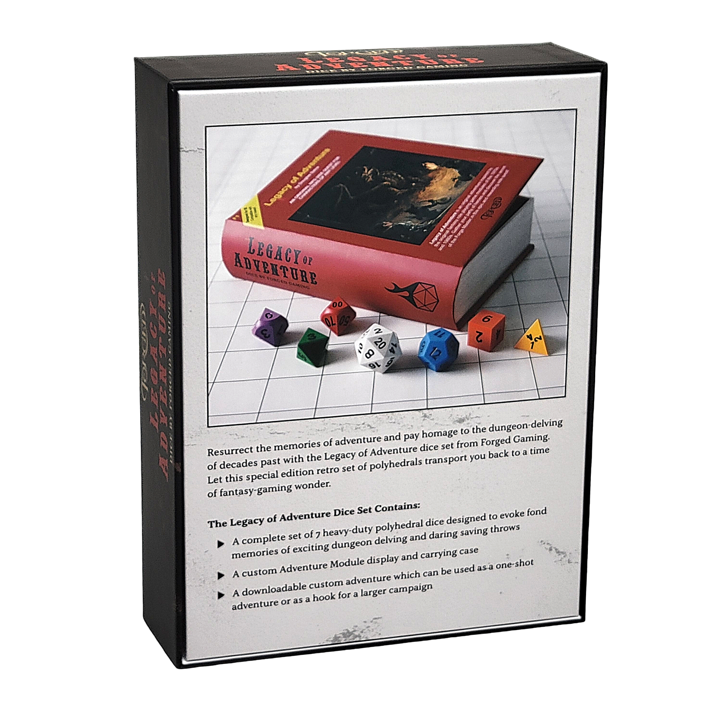 Resurrect the memories of adventure and pay homage to the dungeon-delving of decades past with the Legacy of Adventure RPG Dice Set! Let this special edition retro metal dice set transport you back to a time of fantasy gaming wonder.
