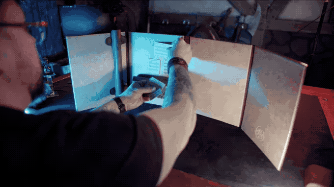 This is an environmental image of the brown version of the Ultimate Game Master Screen Large Pouch displayed on a table.